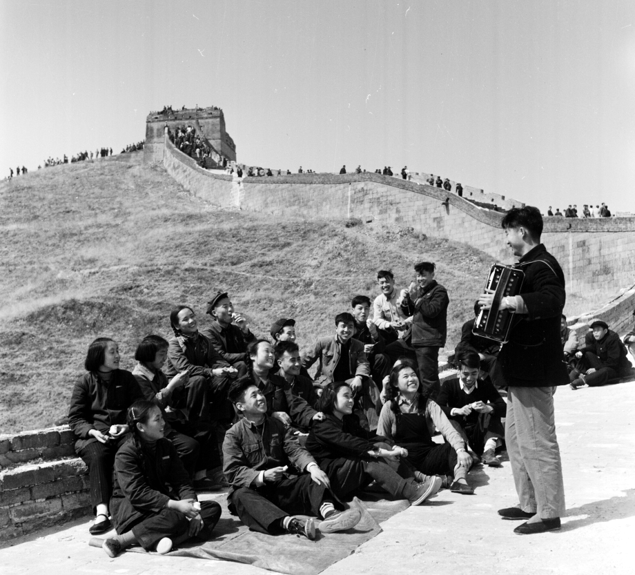 1954年春天,一群到长城春游的年轻人引吭高歌。王一波摄