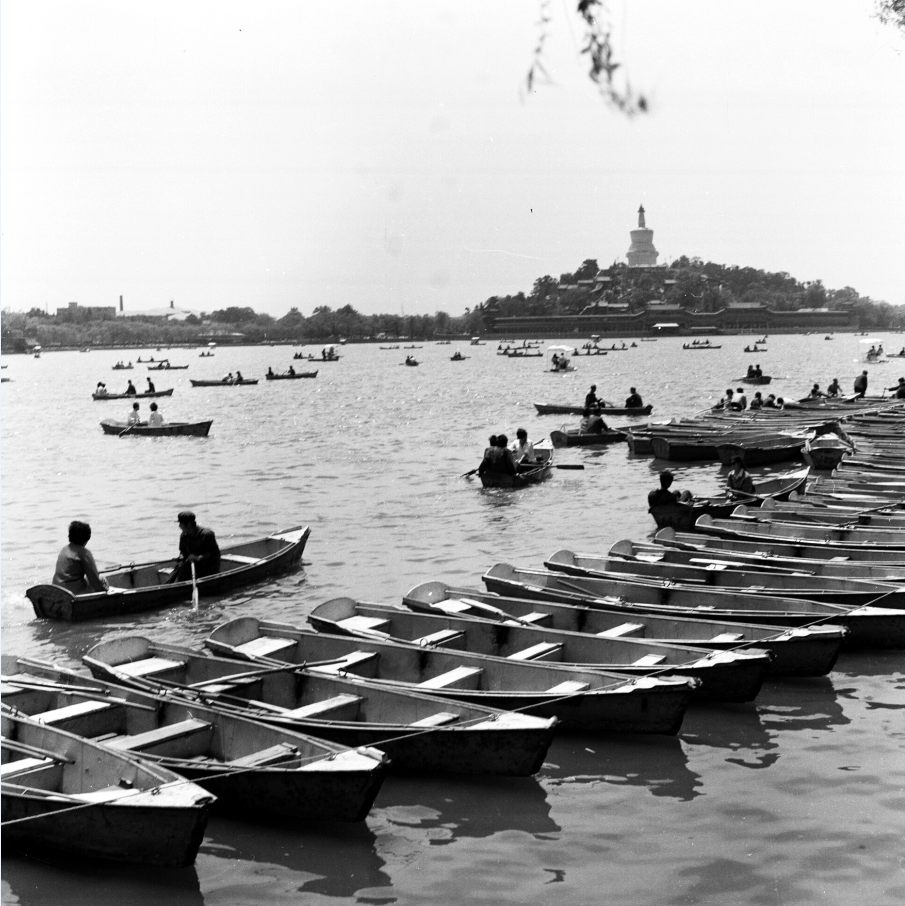 1983年,游客们在北海荡起双桨,享受春天的美好。李晞摄
