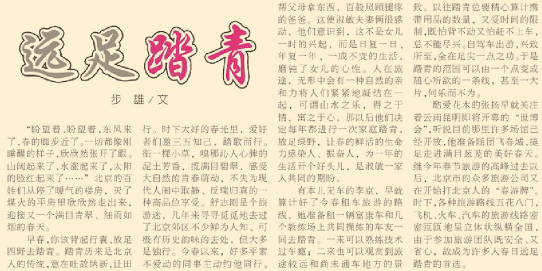 进入新世纪,北京人春游的脚步迈得更大了,不仅有京郊春游,还有国内春游、境外春游。