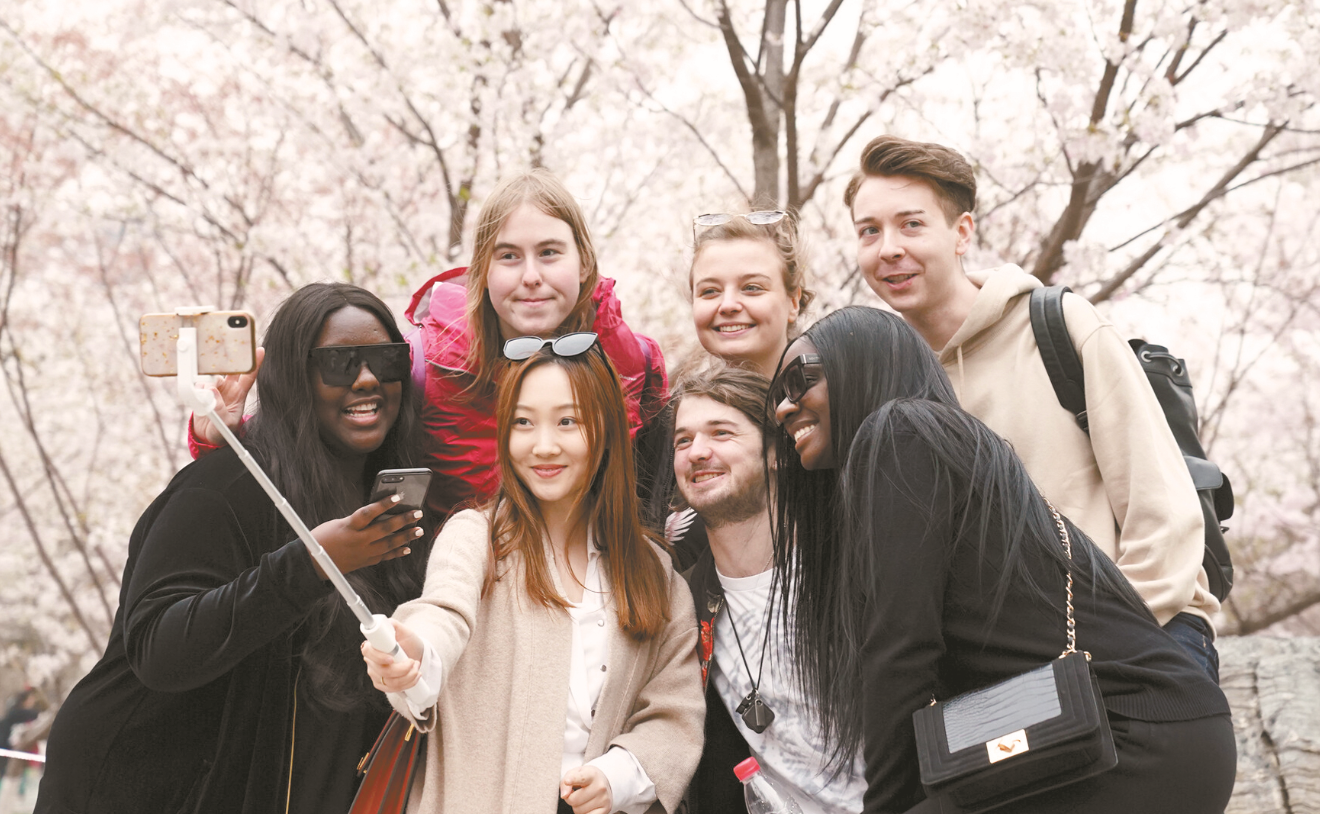 2019年,玉渊潭公园上千株早樱进入盛花期,吸引了众多赏花的中外游客。刘平摄