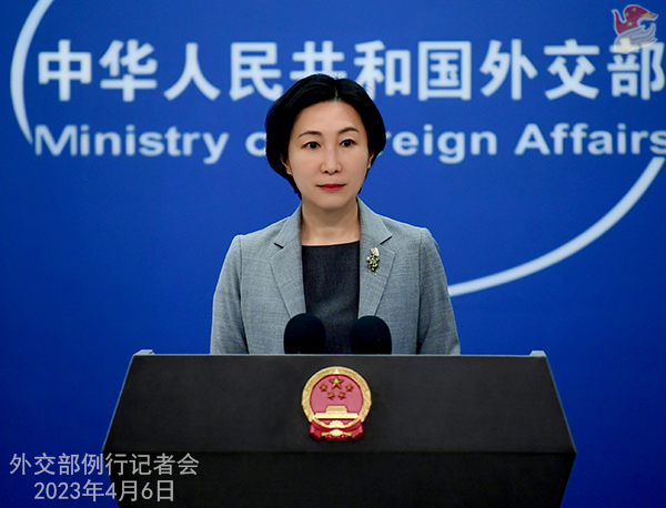 4月6日,外交部发言人毛宁主持例行记者会。