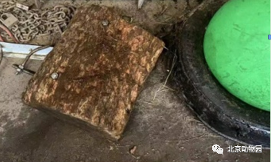 大熊猫“萌兰”场地的蹭痒板,使用14天后蹭痒板肉眼可见“蹭痒”痕迹……