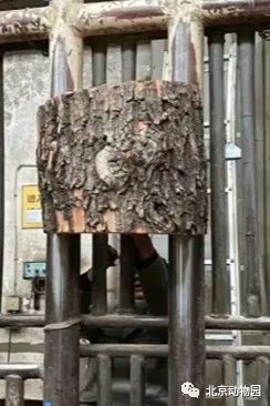 考虑到动物需求、场馆面积及设施情况等因素,工作人员将木桩竖向平均劈成3段,每段厚度在15-20厘米,选取最外侧两块粗糙木板,为象、马来貘、中美貘及大熊猫四种动物安装使用。
