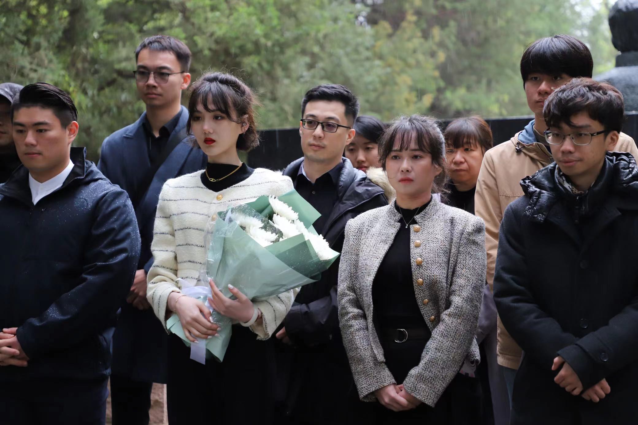 吴紫羽(左三)与青年们祭扫马骏烈士墓