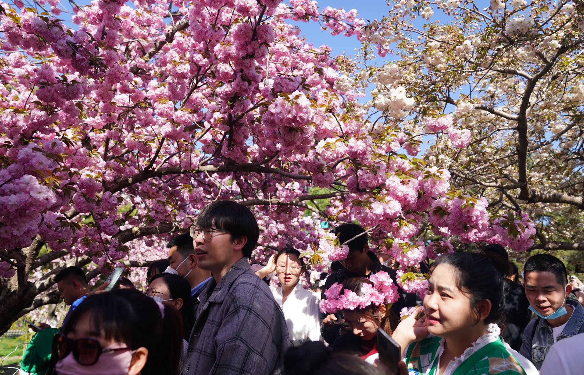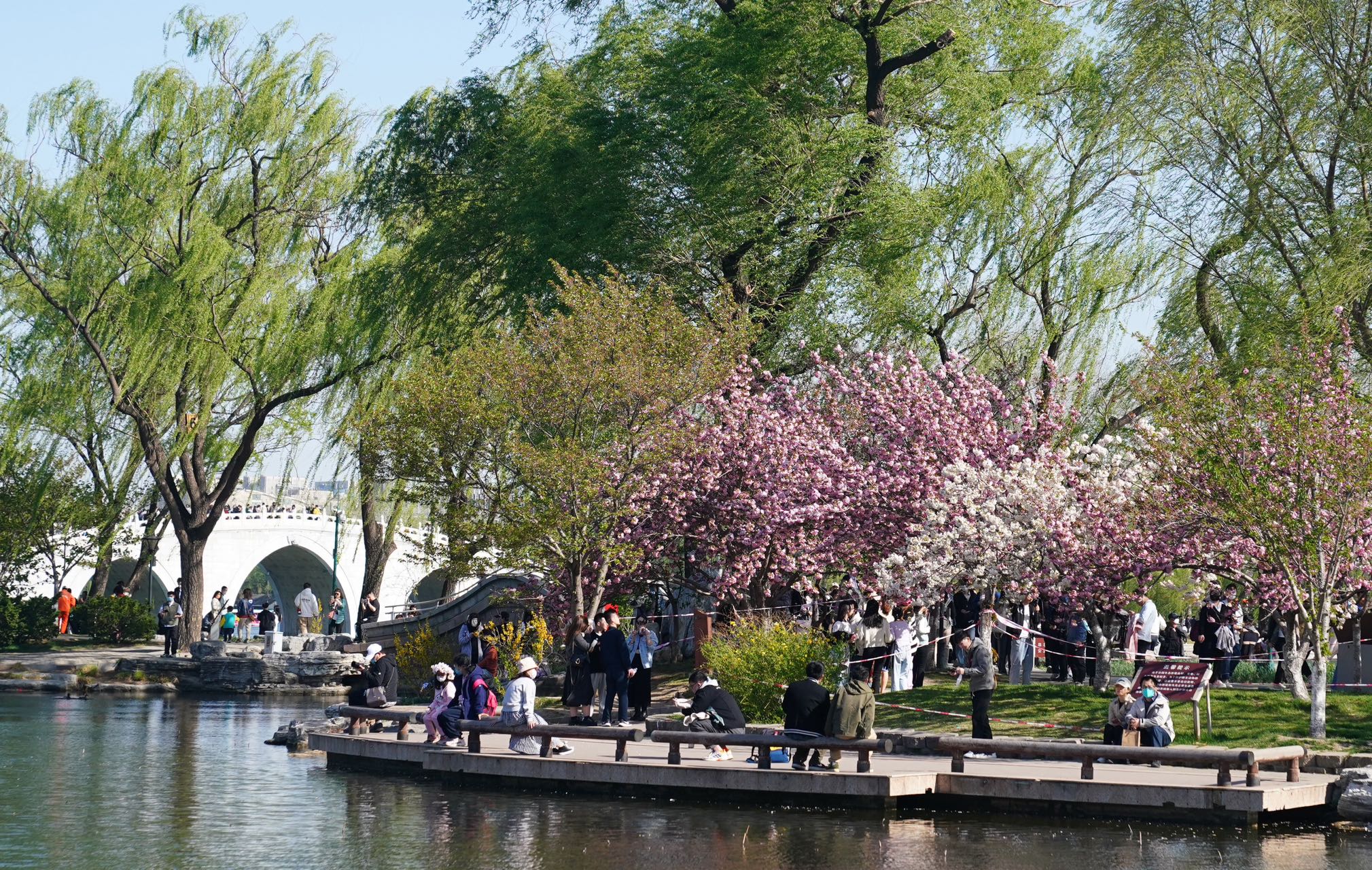 4月9日,玉渊潭公园内近千株晚樱已进入最佳观赏期。
