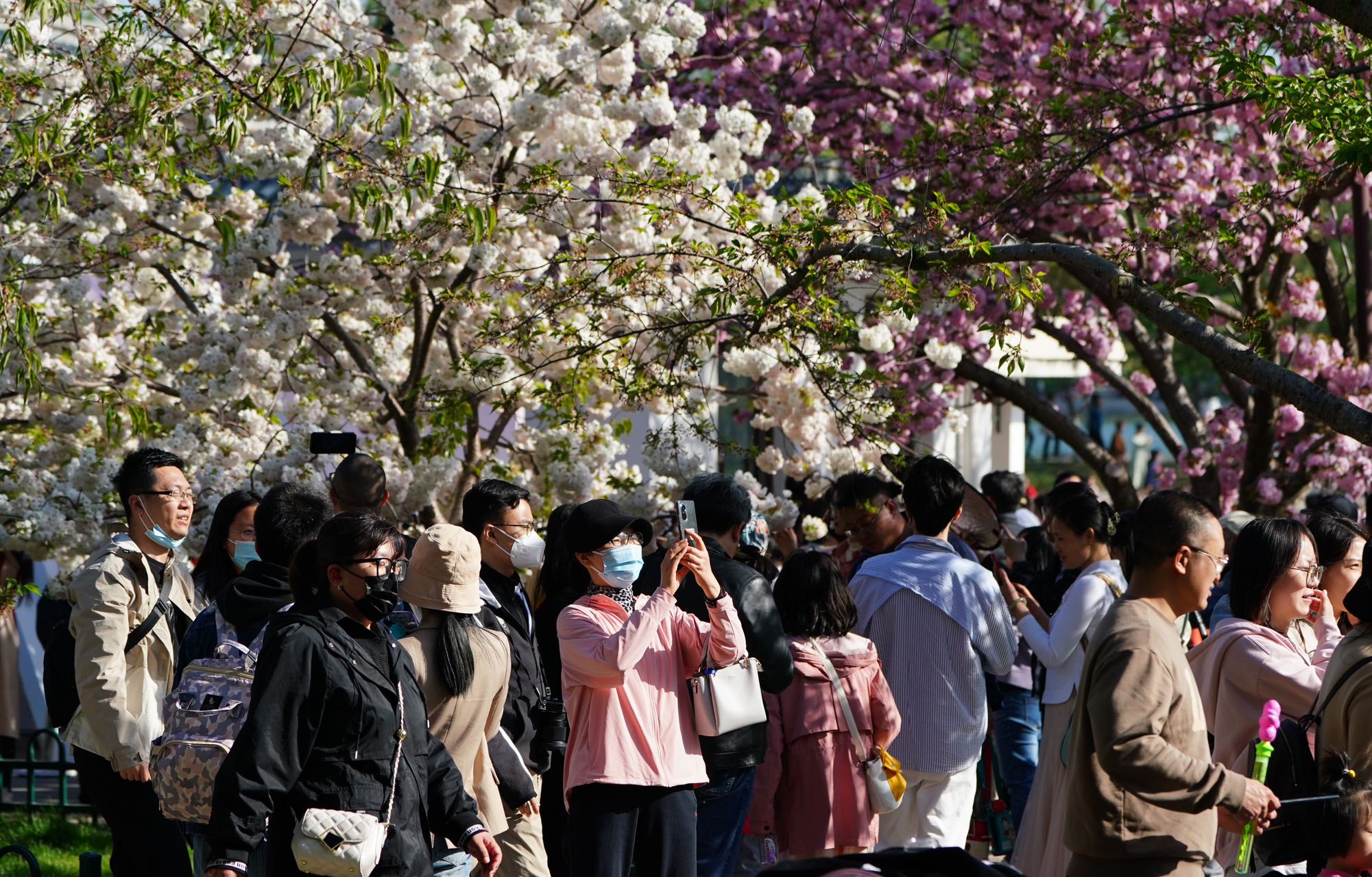 另据了解,晚樱多为园艺栽培品种,相较于早樱花期更长,根据目前的气温情况,园内晚樱观赏期预计将持续至4月中旬。