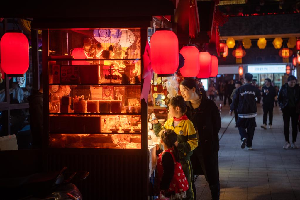 “《三国演义》共120回,其中72回与荆州有关,我们通过强化三国文化印迹打造出一个集荆楚美食、江汉平原水乡特产、文创商品于一体的消费空间,让这里成为荆州人的‘待客之所’。”湖北荆旅商业管理有限公司副总经理肖雄说,自2022年9月开街以来,街区人流量屡创新高,今年元宵节单日客流已突破5万人次。