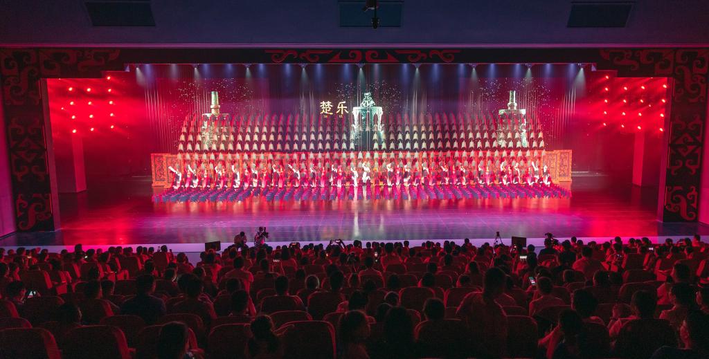 游客在方特东方神画主题乐园里观看《楚乐》表演。(周俊飞 摄)