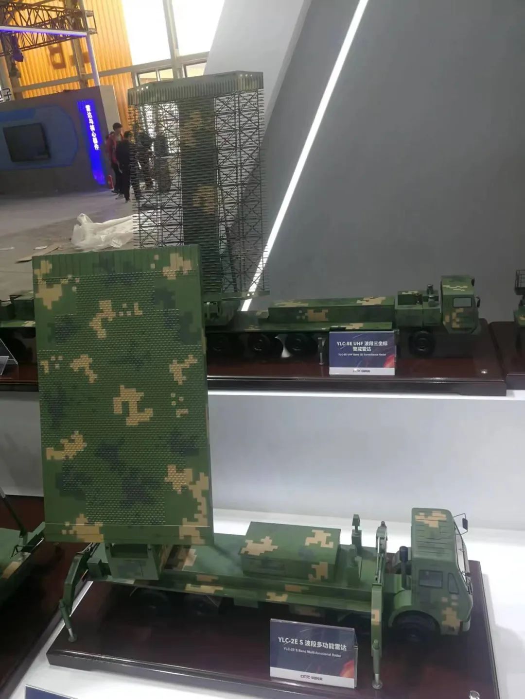 同时展出两种反隐形雷达模型:YLC-2E雷达(前)与YLC-8E雷达(后)