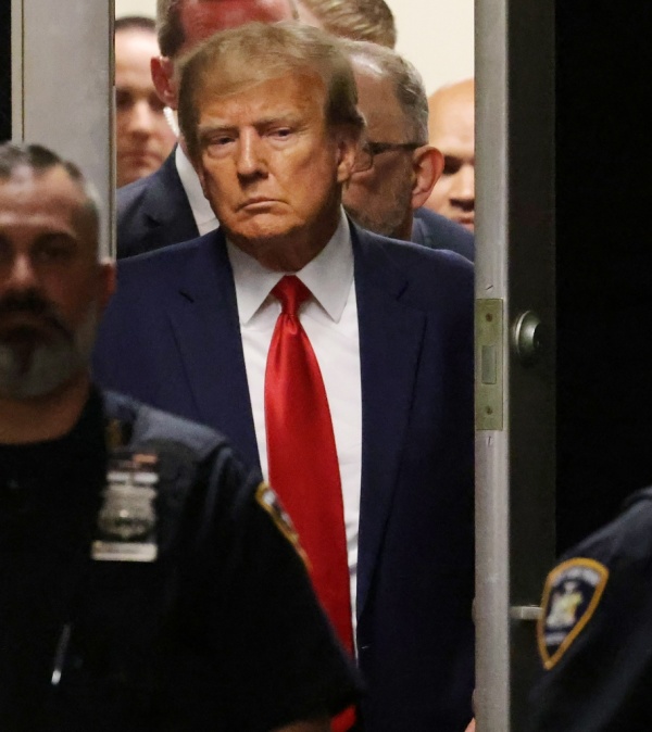 4月4日,因“封口费”案被起诉的特朗普抵达法院,出庭并接受问讯。