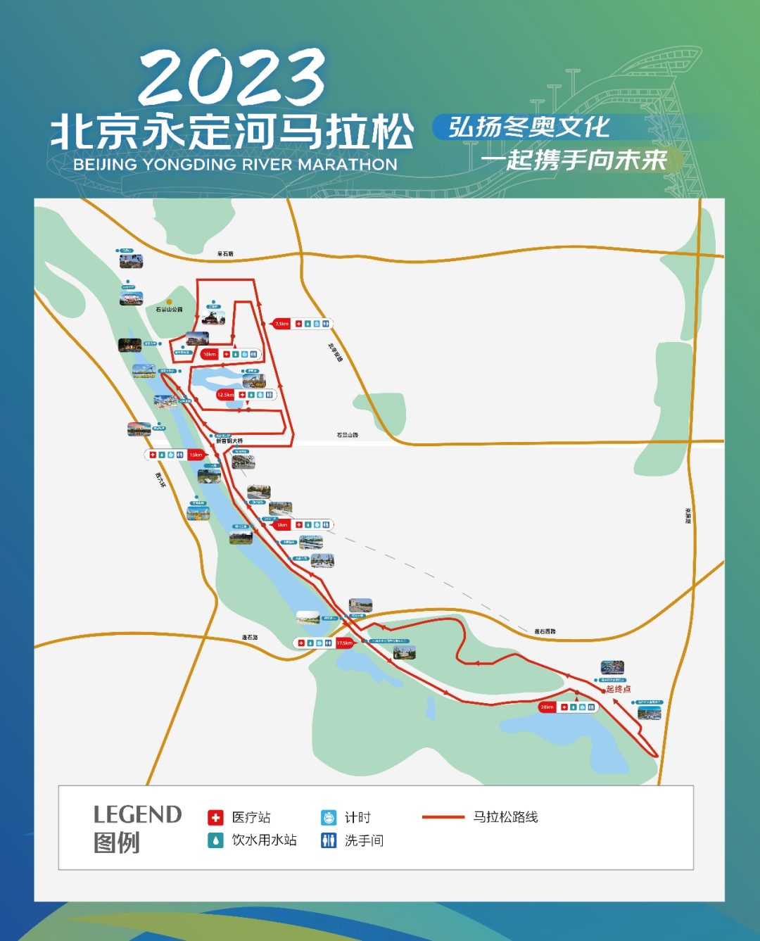 2023北京永定河马拉松比赛定于2023年4月22日(星期六)上午7时30分在永定河畔举行,具体比赛路线为:由马拉松大本营出发,经永定河森林公园北二门——永定河森林公园南二门——经莲石湖三标过漫水桥京原路进入莲石湖4号木屋位置——鸽子广场——沿着河堤东路到新首钢桥下拐弯至石景山路——进入群明湖大街——秀池北路——秀池西街——群明湖北路——群明湖西街——五一剧场南路——动力东街——秀池南路——群明湖大街——群明湖北路——群明湖西街——群明湖南路——群明湖大街——经石景山路返回河堤东路——冰雪森林下坡折返堤下路(东岸)——4号木屋——经漫水桥京原进入永定河森林公园南二门——永定河森林公园东二门——卢沟桥北路——南门下坡——沿原汽修厂路线达到马拉松大本营比赛终点。为保障比赛活动顺利进行,确保赛事交通安全畅通,根据《北京市实施〈中华人民共和国道路交通安全法〉办法》有关规定,现通告如下: