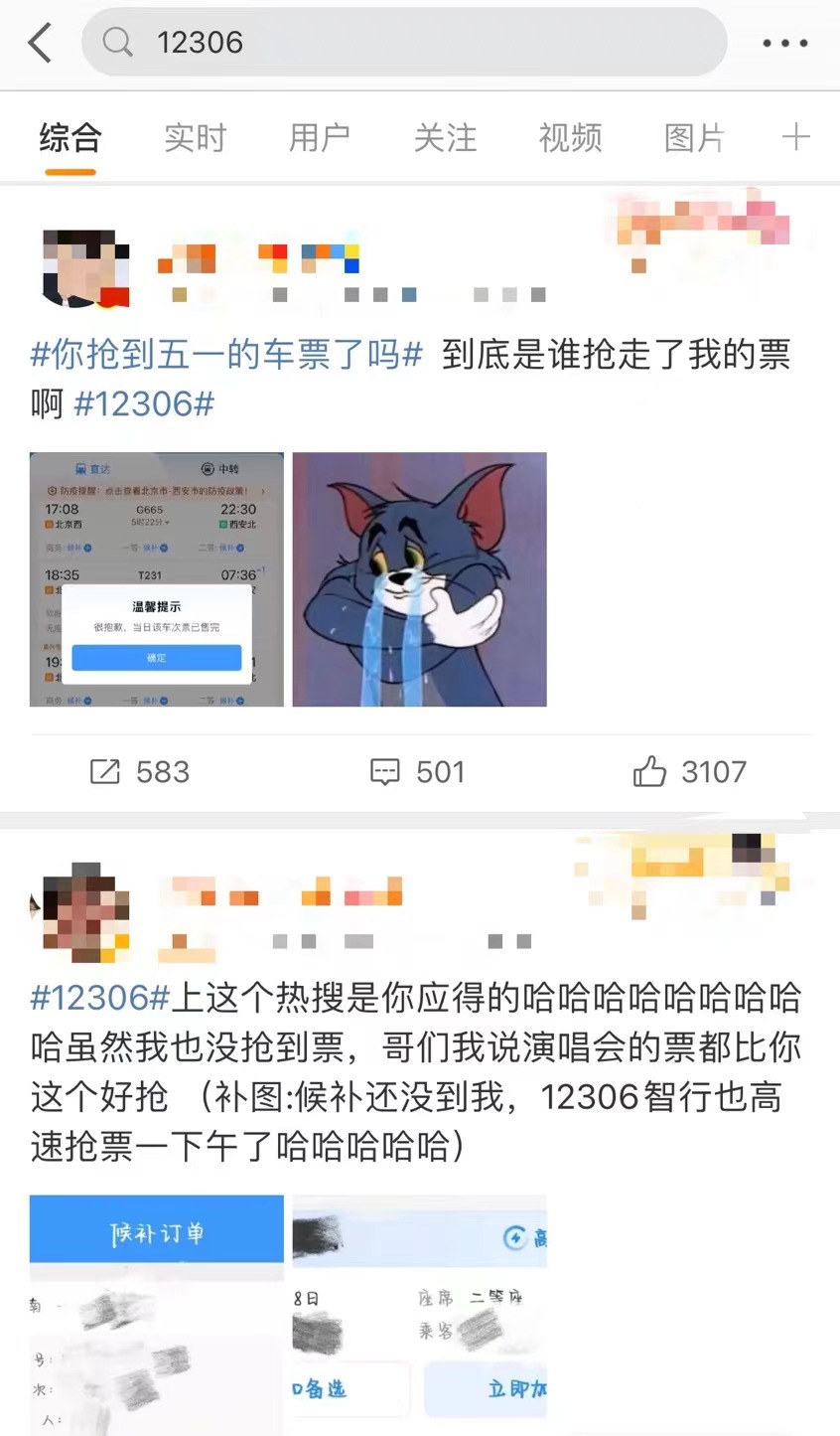 与此同时,12306也于4月14日登上了热搜,众多网友表示,“想回家、想出去玩,但是抢不到票。”