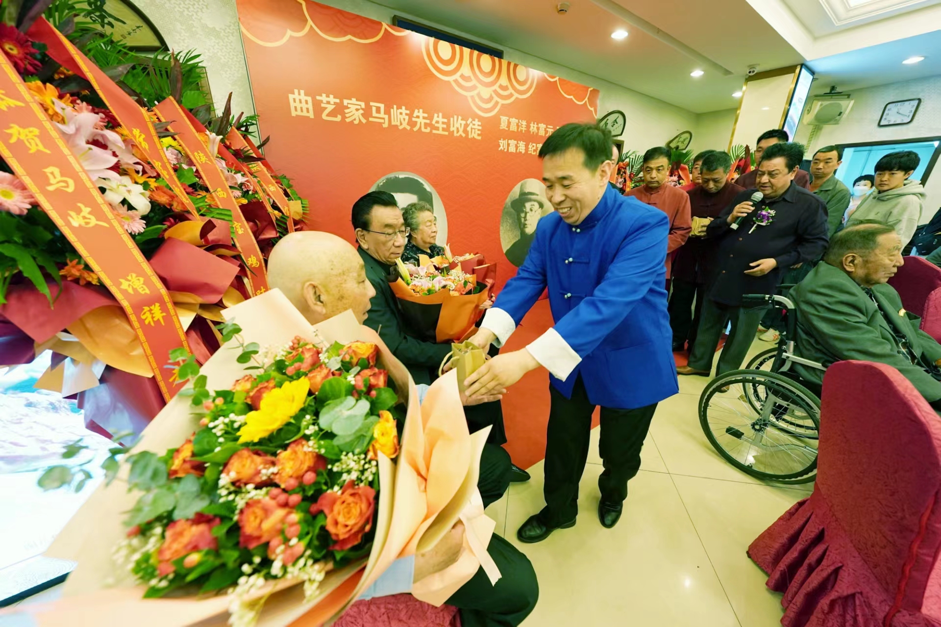 “希望你们能努力传承北京评书艺术,讲好中国故事。”4月16日,鸿宾楼里高朋满座,正在发言的是西城区非遗项目评书(北京)代表性传承人马岐。当天,年过八旬的他喜收六名弟子,为传承评书艺术、老北京文脉再次做出贡献。