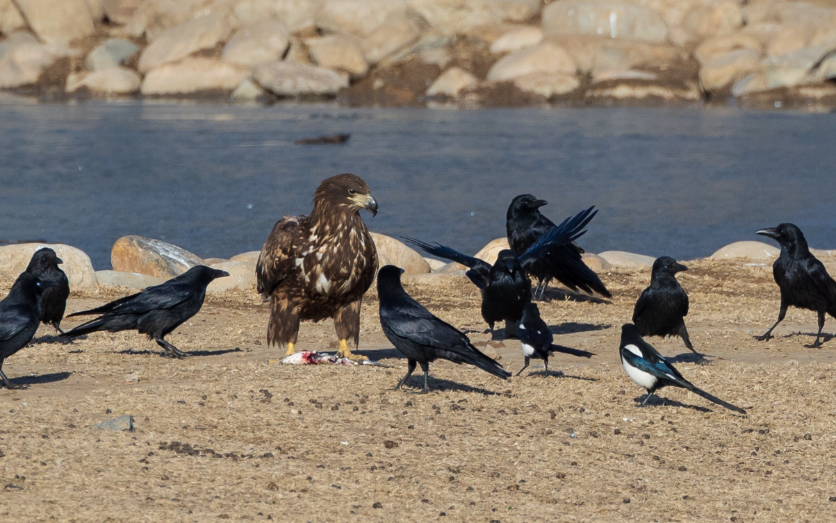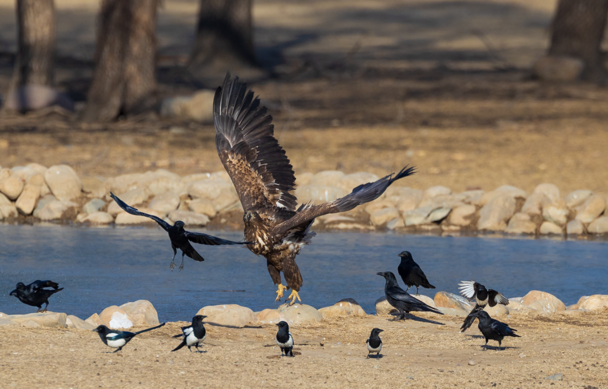 12种新纪录到的鸟类中,白尾海雕属于国家一级重点保护动物,已经被列入世界自然保护联盟濒危物种红色名录,每年仅有少量个体在北京的水库区域越冬。2022年11月12日,1只亚成体白尾海雕出现在麋鹿苑,北京生物多样性保护研究中心工作人员持续观察发现,苑内丰富的湿地鸟类和鱼类为白尾海雕提供了充足的食物,因此这只“国宝”直到今年3月才离开麋鹿苑,跟“国宝”麋鹿当了100多天“邻居”。