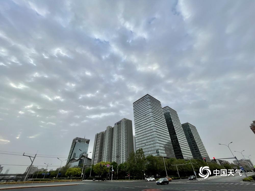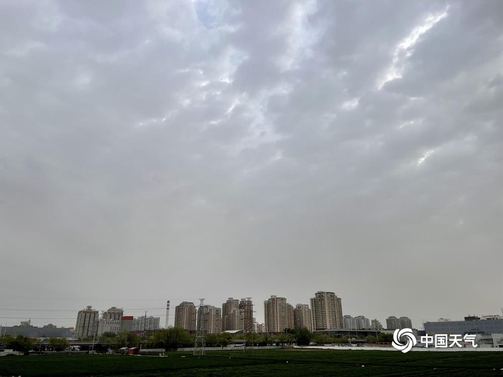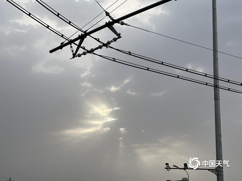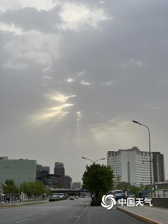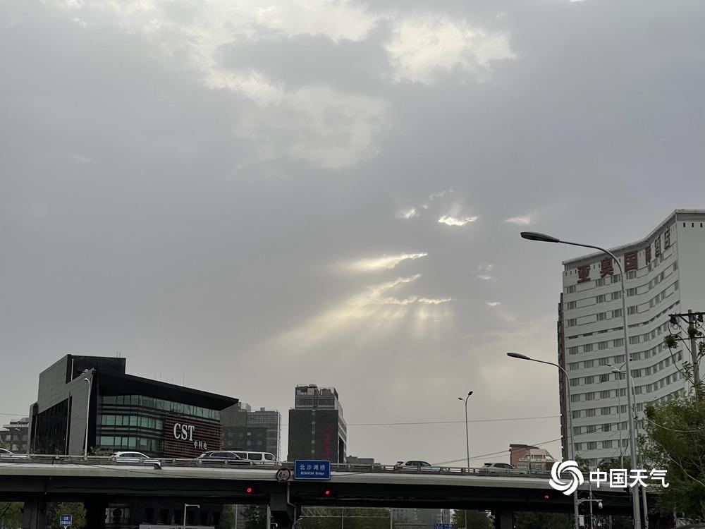 4月20日早晨,受冷空气影响,北京出现大风降温天气,局地伴有扬沙。天空一改前几日的晴朗通透,阳光穿过厚厚的云层,形成“丁达尔”效应。