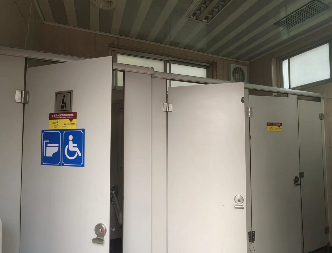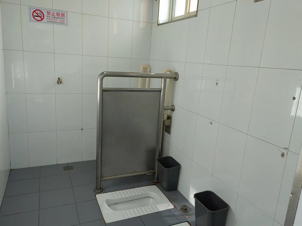 记者来到位于七圣南路与西坝河南路交叉口附近的公共卫生间,发现这里虽然设有一个带扶手的无障碍卫生间,但位置更靠近男厕,很少看到女性使用。在女厕中,四个隔间均为蹲便,两侧隔板或墙壁上都未安装扶手。