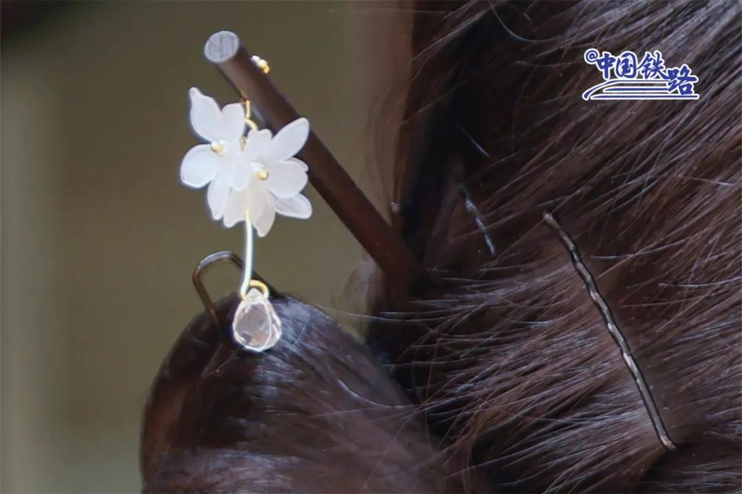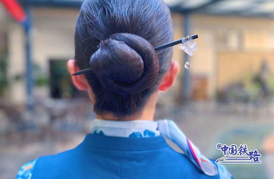 乘务员将长发整齐利落地盘在耳后