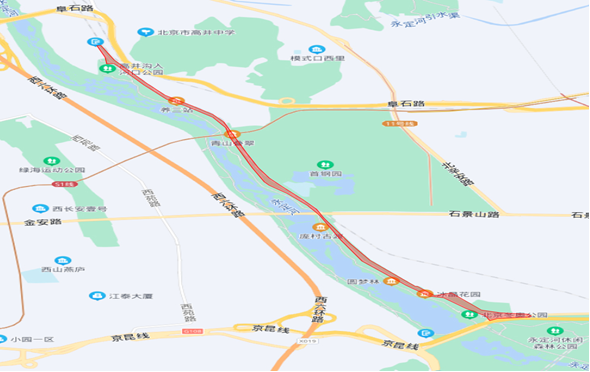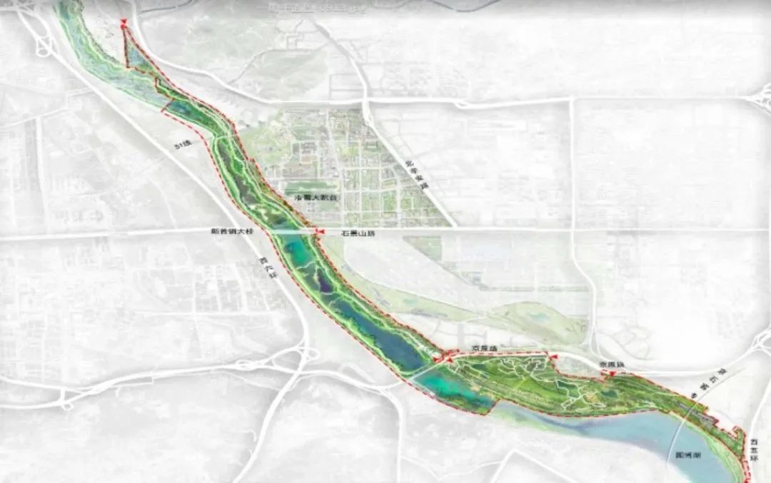 北京冬奥公园东北部地区与首钢园区相衔接,北起麻峪村东,南至京原路,西起冬奥公园东边界,东至阜石路,面积约6.96公顷。