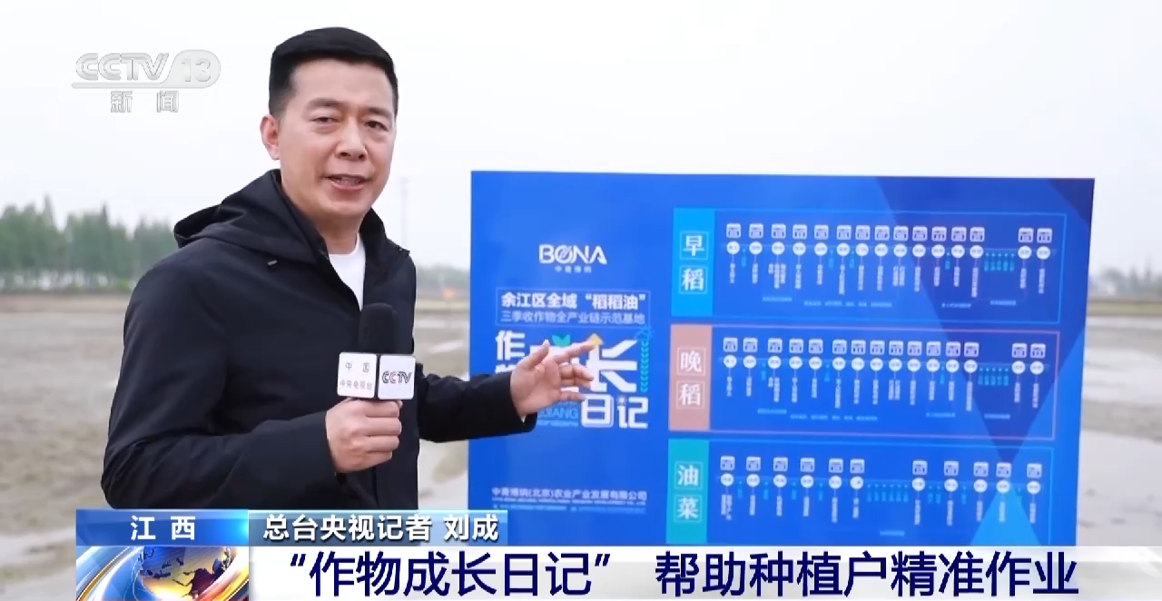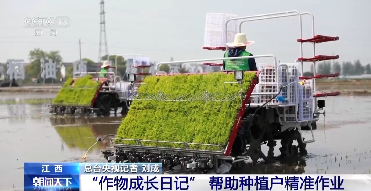 总台央视记者 刘成:在江西鹰潭余江区的一块万亩农田里,农机正在忙着栽插早稻,与其他地方所不同,这里的水稻从选种、育秧、栽插包括后期的植保甚至收割全部是按照作物成长日记精准作业的。