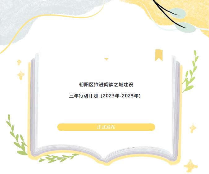 4月23日是第28届世界读书日,《朝阳区推进阅读之城建设三年行动计划(2023年-2025年)》正式发布,朝阳区将按照“一个品牌、五个体系”的总体思路,全力构建阅读空间示范、阅读品牌活动、阅读推广人才培育、阅读协同发展、阅读成果评估等五大体系,大力提升“悦读阅朝阳”品牌影响力,积极营造浓厚的阅读氛围,更好满足人民精神文化生活新期待,不断提升区域文化软实力。