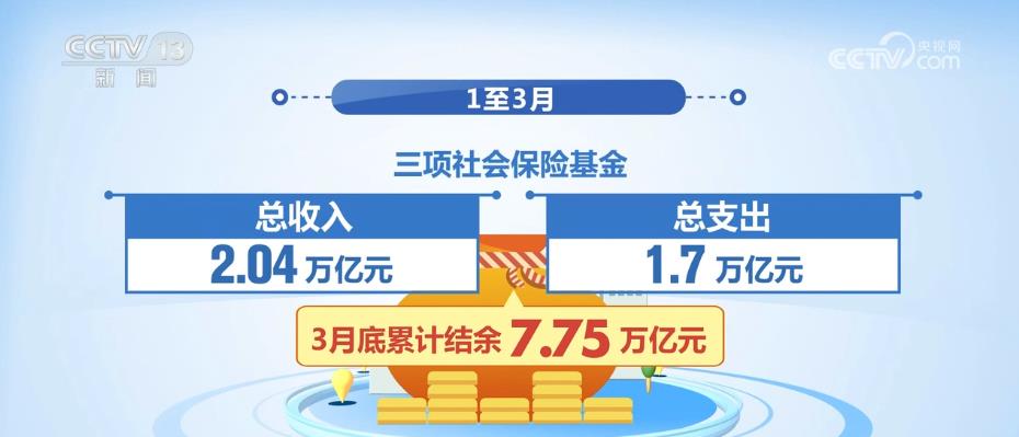 截至3月底,全国基本养老、失业、工伤保险参保人数分别为10.52亿人、2.37亿人、2.89亿人。1至3月三项社会保险基金总收入2.04万亿元,总支出1.7万亿元,3月底累计结余7.75万亿元。全国社保卡持卡人数13.7亿人,覆盖97%人口。电子社保卡领用人数7.64亿人,覆盖54.1%人口。