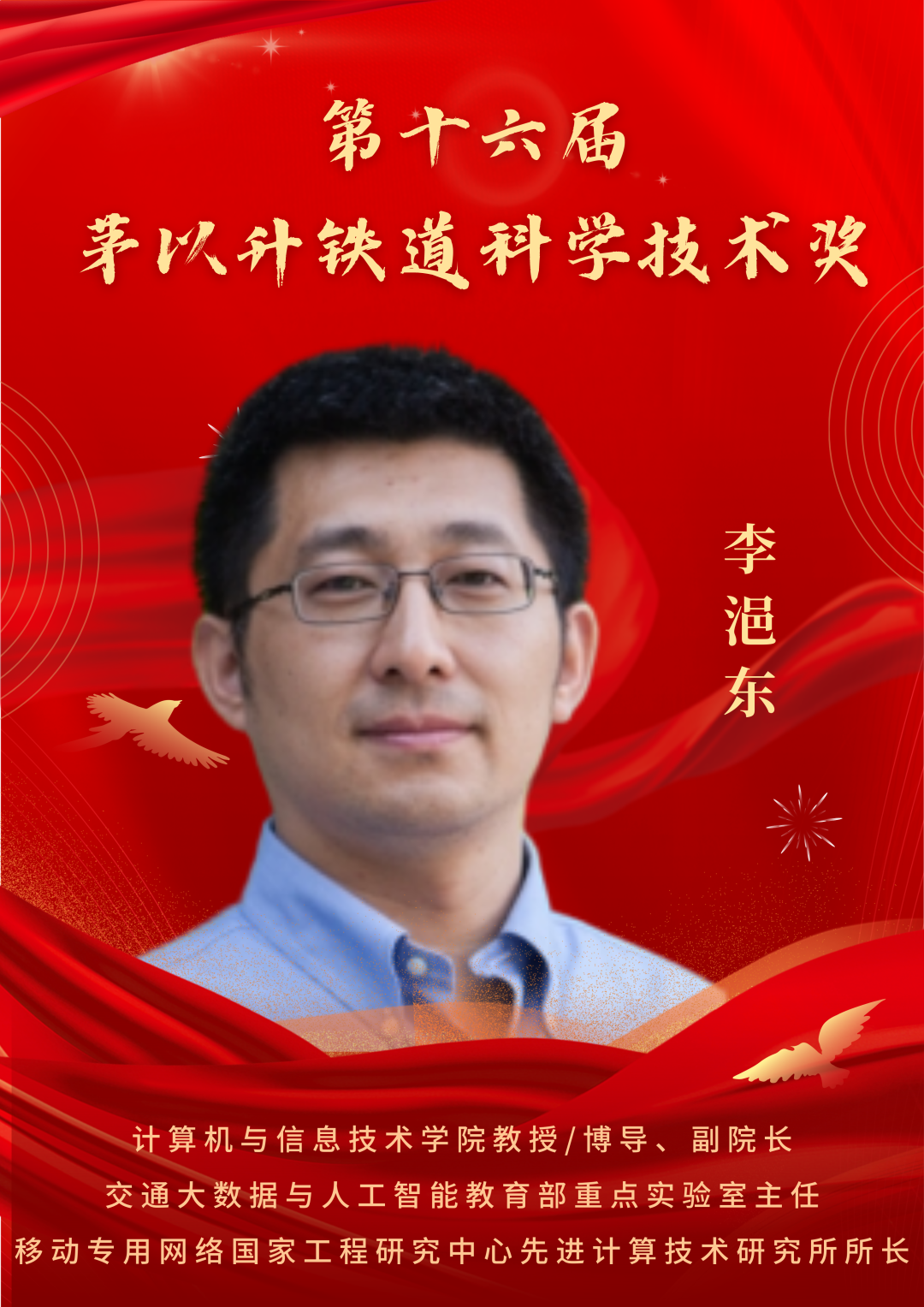 荆涛教授、李浥东教授、曹源教授获第十六届茅以升铁道科学技术奖
