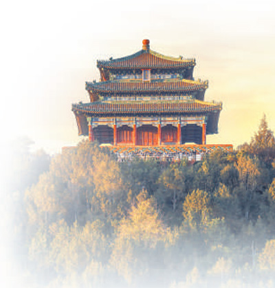 景山,北京中轴线的最高点。这座园林曾是元明清三代皇宫的重要组成部分。不过,景山的建筑,起初并未严格遵循中轴布局。直至清代乾隆时期,原来位于景山东北角的寿皇殿建筑群,被整体移到了正北的中轴线上;又在景山上新建5座亭子,万春亭居中,另外4座亭子呈左右对称。通过这一改动,北京中轴线再次得到完善,中轴线制高点也由此确立。