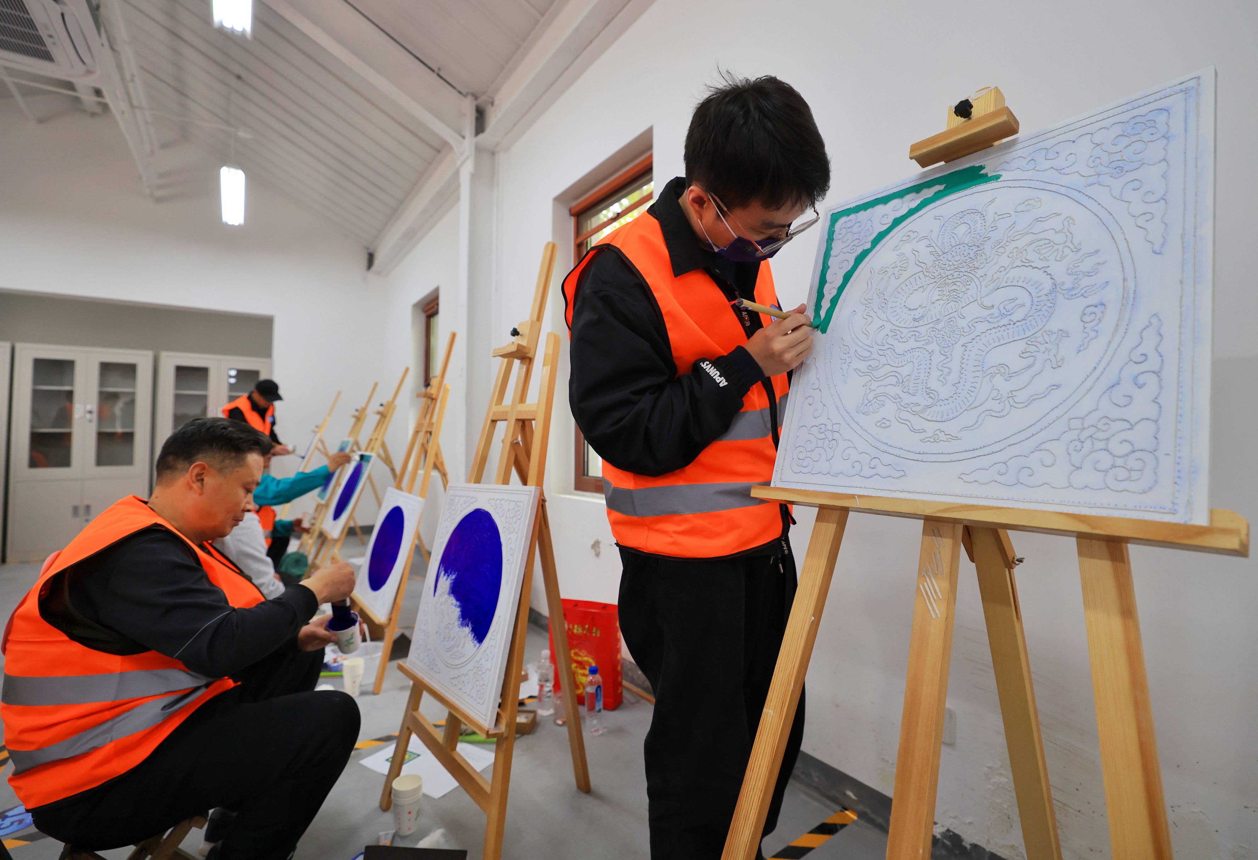 随着裁判一声令下,决赛实操竞赛正式开始。刷色、晕色、贴金、行粉……工匠们手握画笔,在纸上精心描绘着古建筑上的传统纹样。比赛裁判长王乃海介绍,本次比赛的考察内容是古建筑彩画工艺中的核心技能,也是体现彩画工个人能力的重要标准。在实操环节中,选手需在规定时间内完成清式坐龙天花彩画制作。“这次比赛有一定的难度,多种彩画技艺都融汇在了这张画作中。”王乃海说。