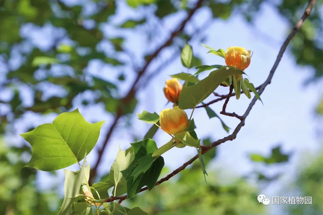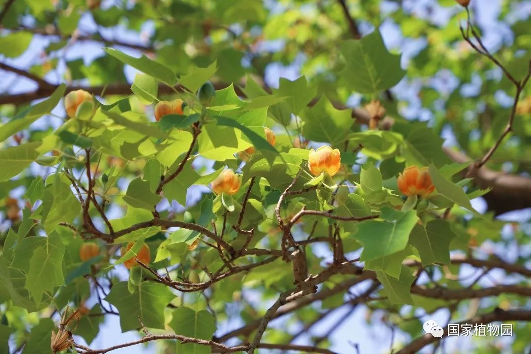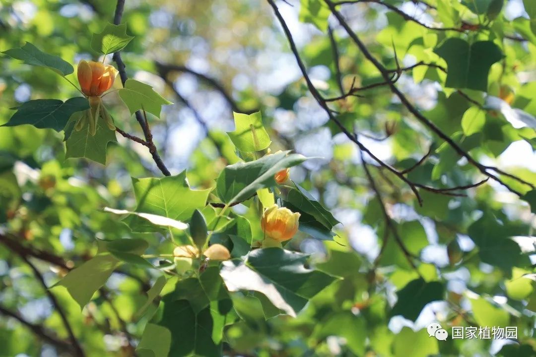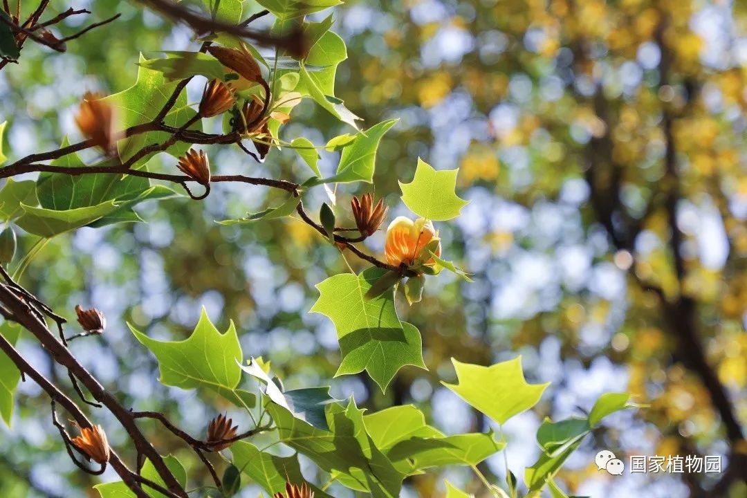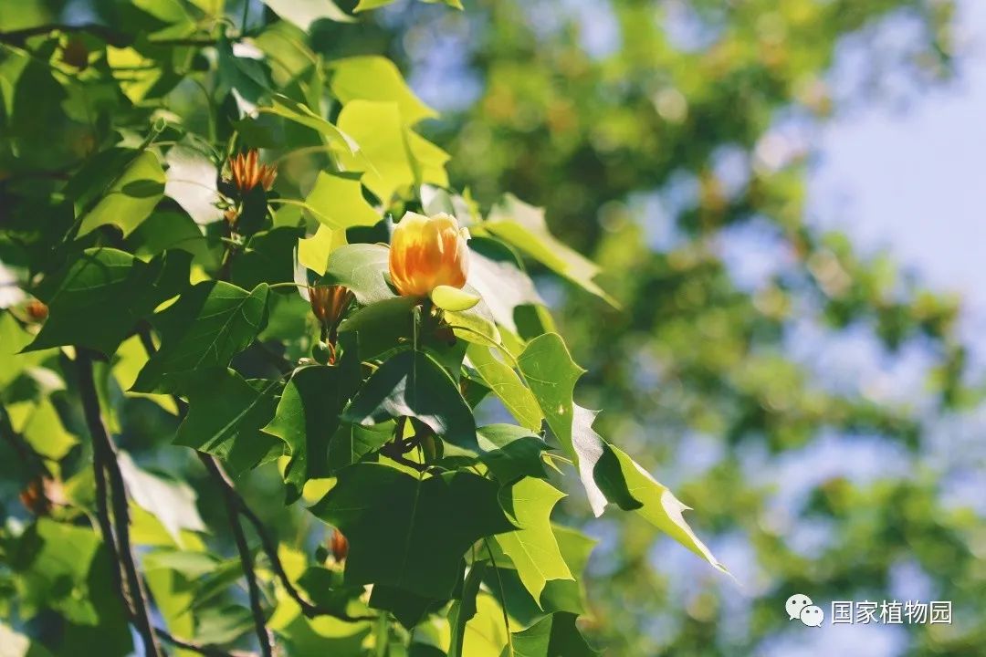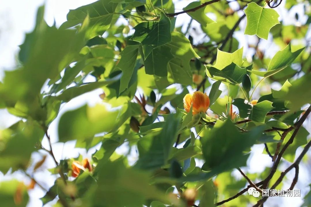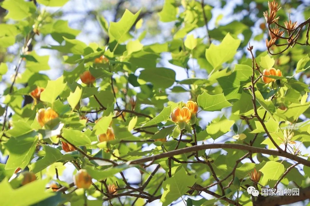 暮春时节的郁金香,开得热烈灿烂,丰富多彩的颜色和花型深受游客们的喜爱。再往深处的树木区漫步时,抬头一看,细心的人便会发出疑问:“怎么还有郁金香长在树上?”它就是我们今天的主角——鹅掌楸属植物。