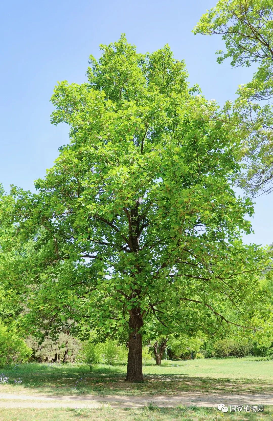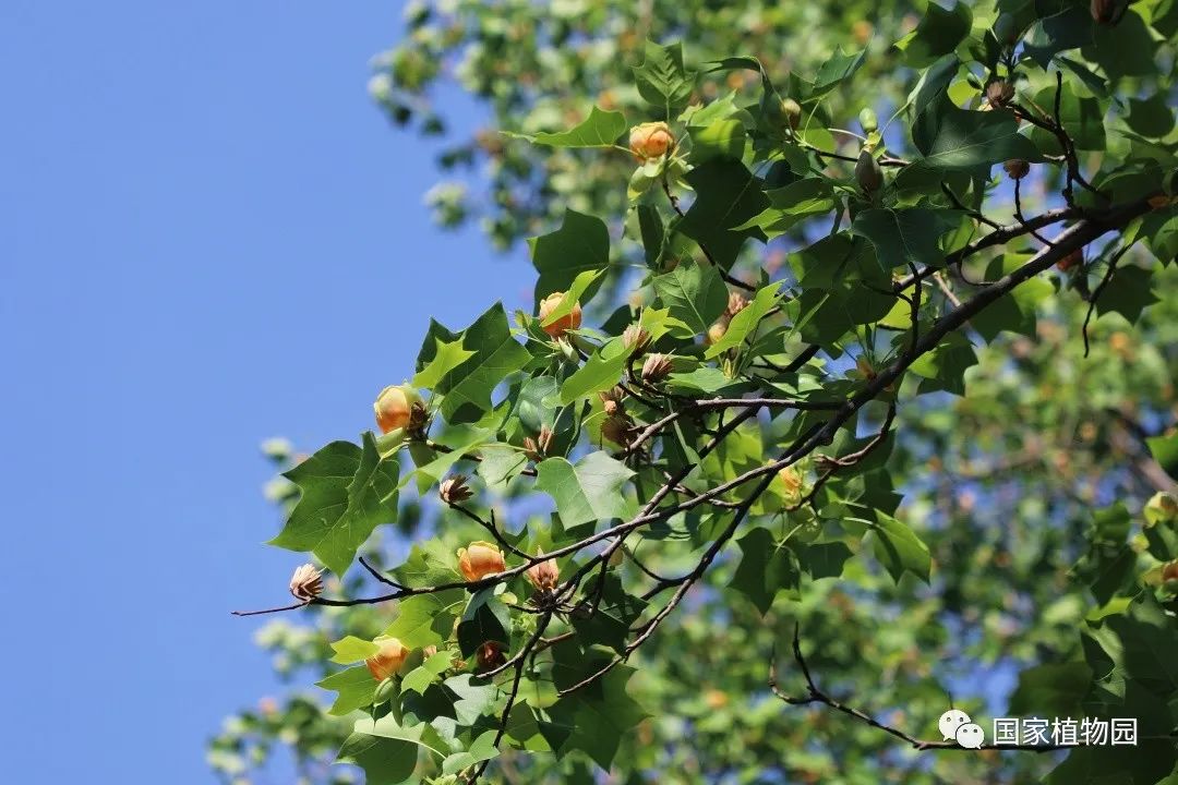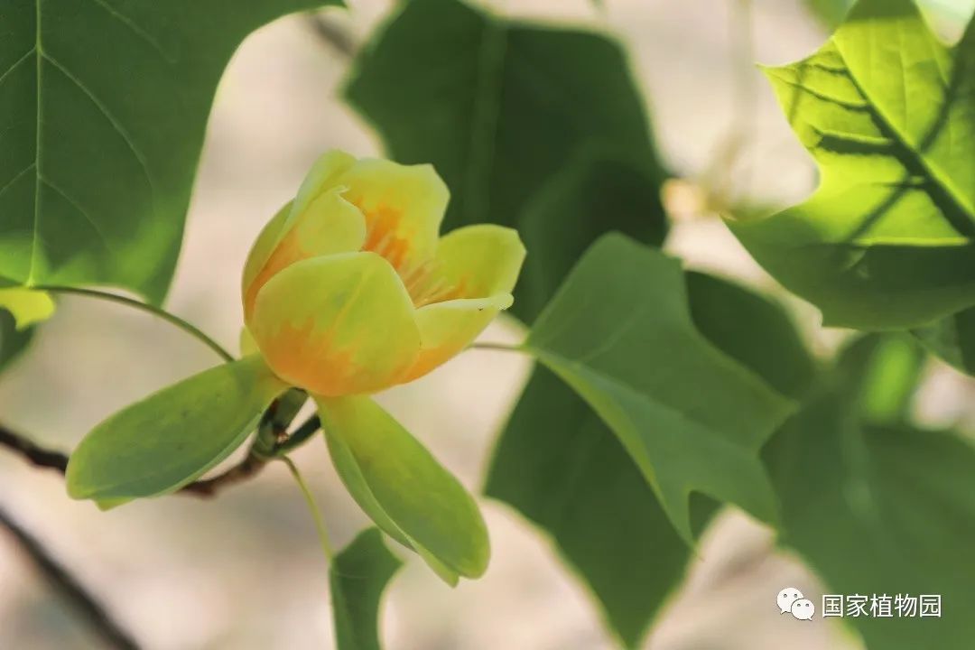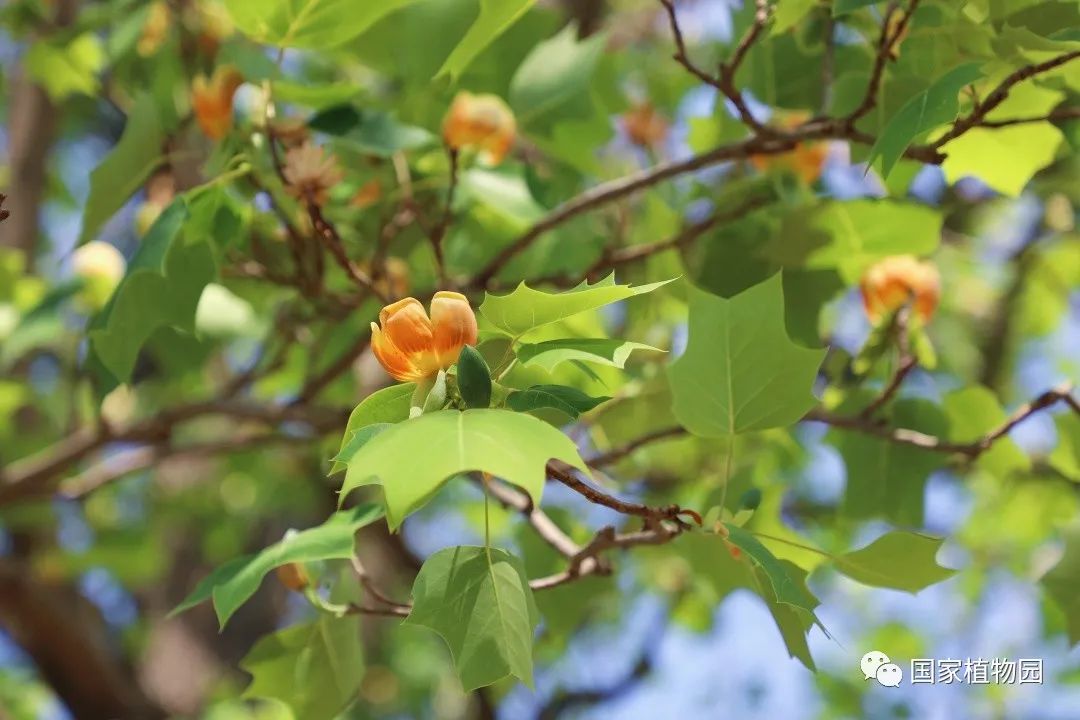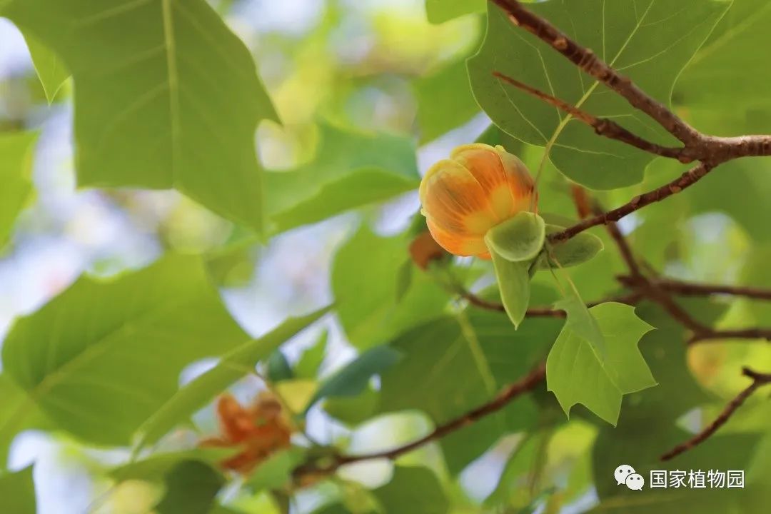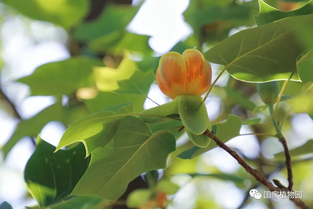 暮春时节的郁金香,开得热烈灿烂,丰富多彩的颜色和花型深受游客们的喜爱。再往深处的树木区漫步时,抬头一看,细心的人便会发出疑问:“怎么还有郁金香长在树上?”它就是我们今天的主角——鹅掌楸属植物。