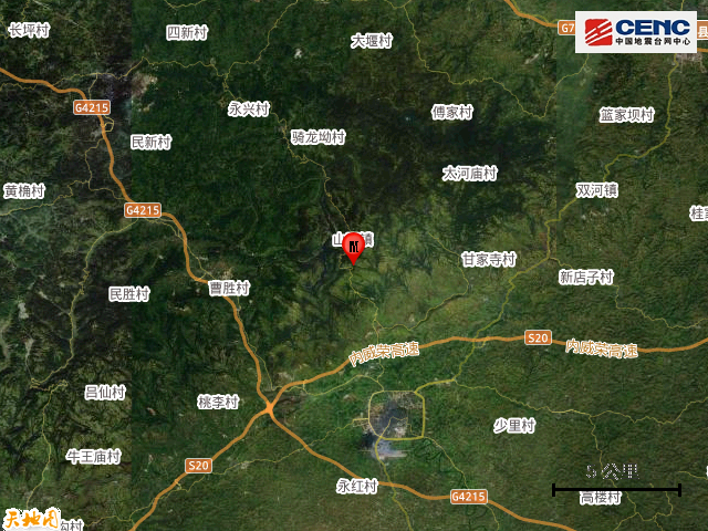 附近村镇:本次地震周边5公里内的村庄有干家寺、林家湾、莫家店、古家湾、罗家湾、杨家坡、马儿石、罐子口、长岭岗、叫化岩,20公里内的乡镇有山王镇、新场镇、观英滩镇、镇西镇、高石镇、严陵镇、铁佛镇、新桥镇、龙会镇、双河镇。