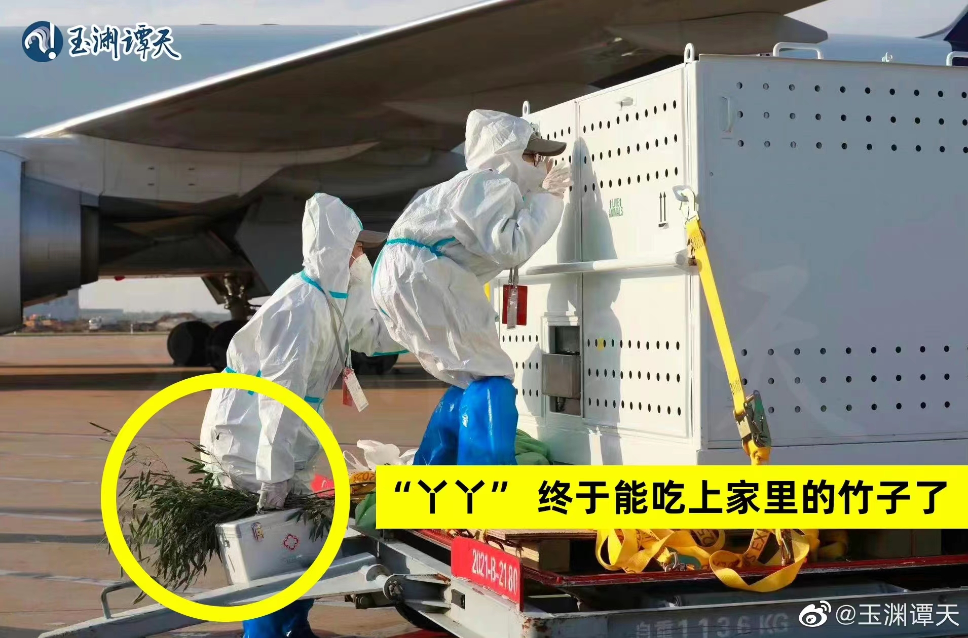 欢迎回家!丫丫一到机场就收到了竹子