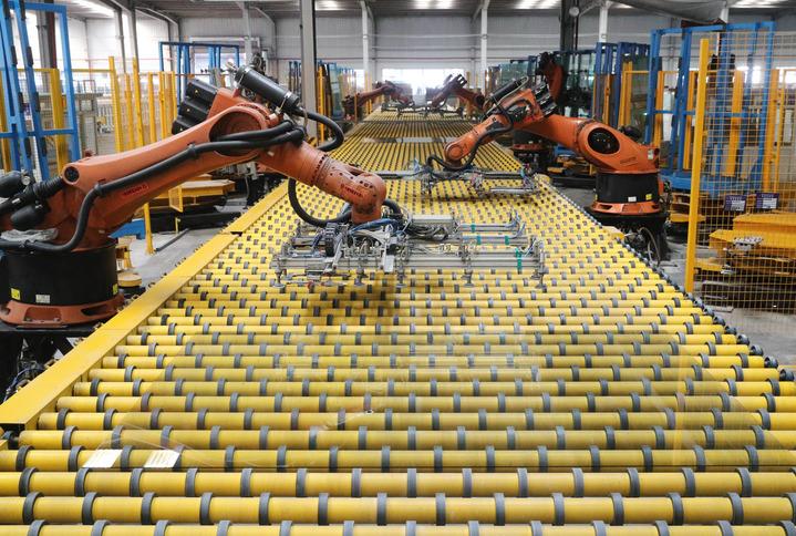 秦皇岛海港经济开发区一家玻璃企业的机器手在工作中(2023年2月17日摄)。新华社记者 杨世尧 摄