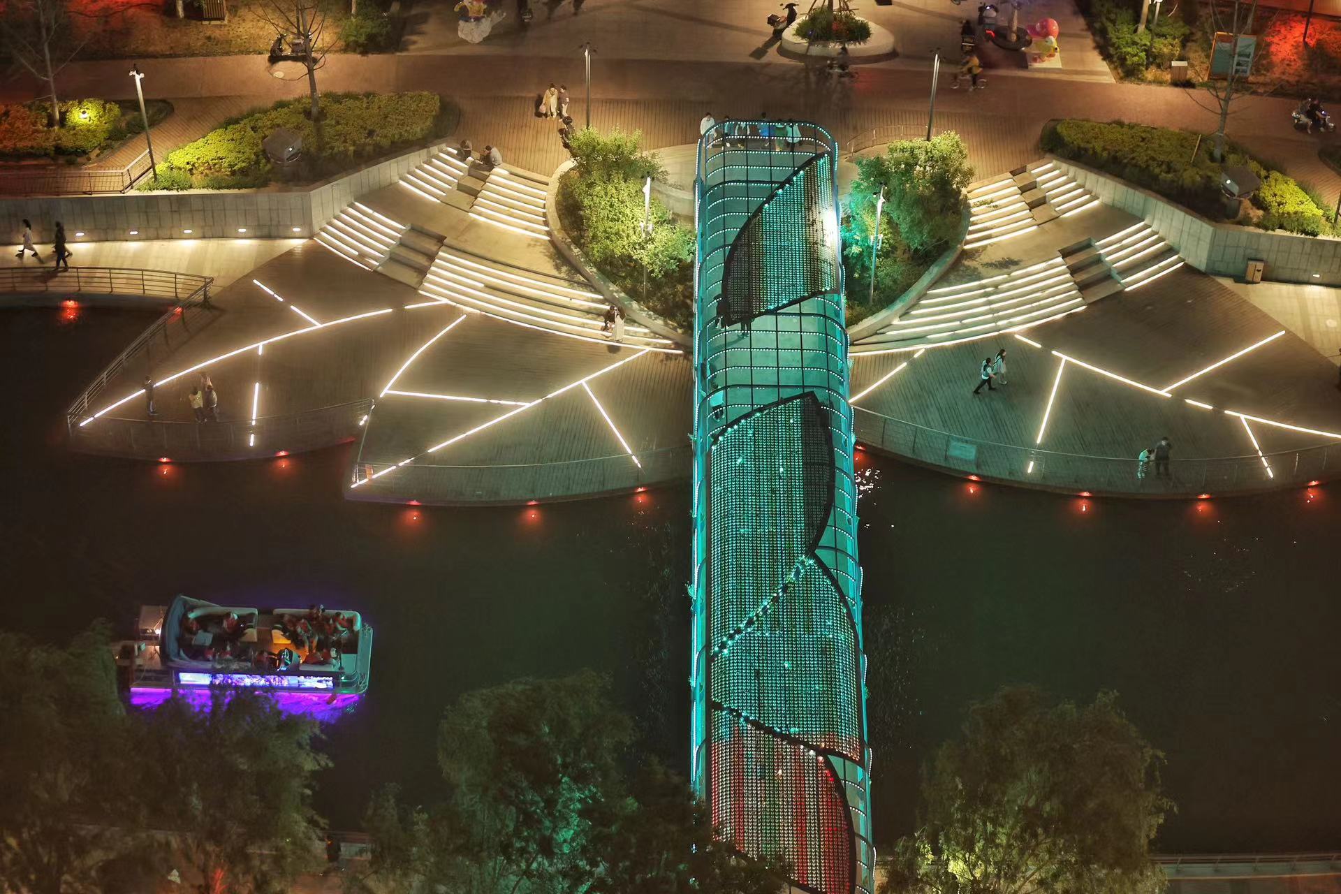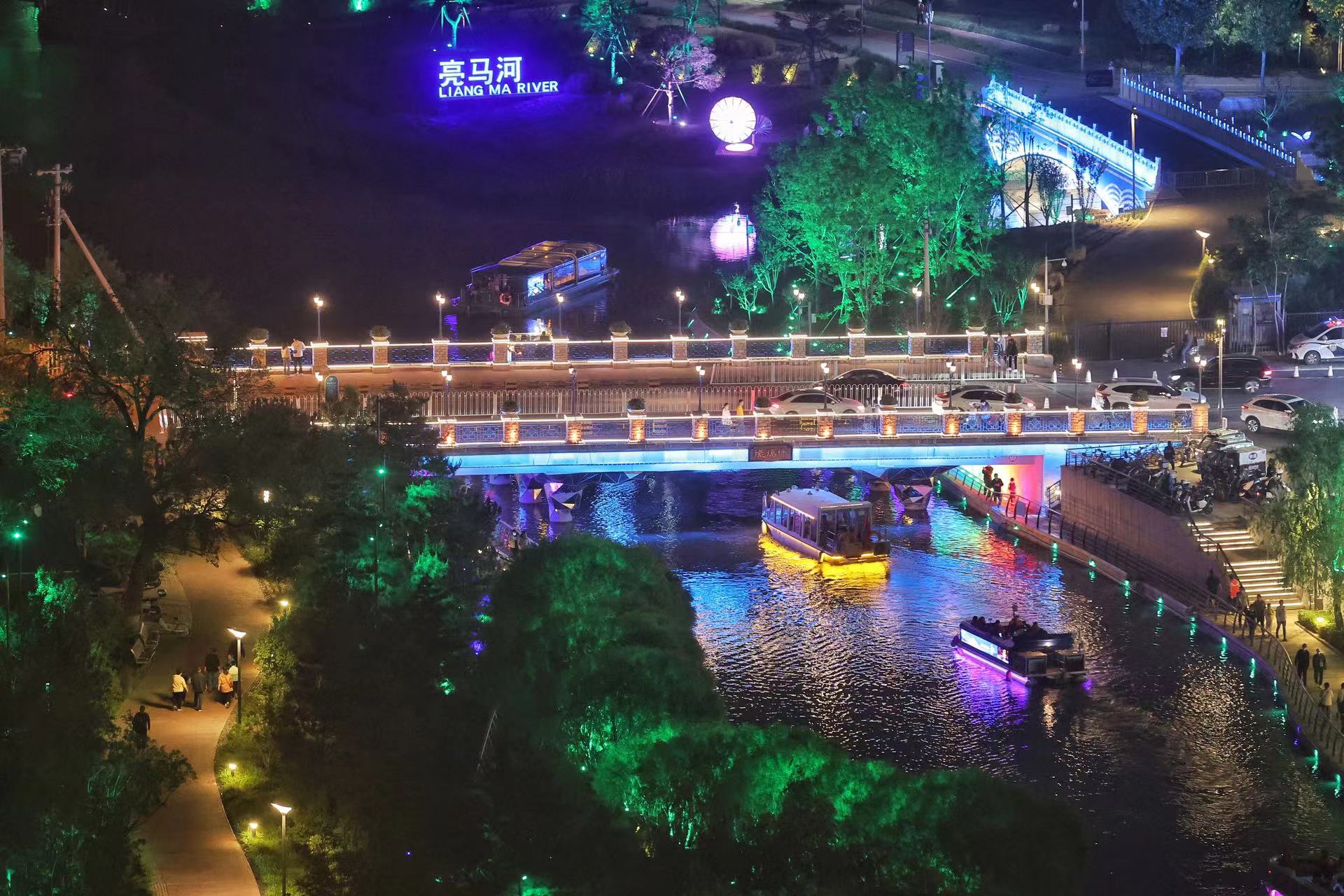 市民既可以选择畅游18公里滨水绿道,穿行二十四桥,感受夜幕下的梦幻亮马河;也可以去高碑店地区领略大运河灯光的独特魅力,还可以在11公里的长安街沿线欣赏“一轴连金线、一河载历史”的明亮夜景,抑或是在三里屯、CBD商圈感受璀璨都市不眠夜。