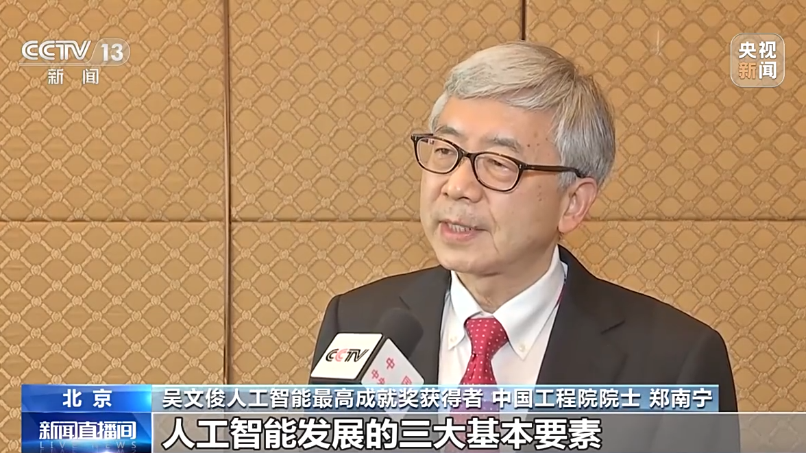吴文俊人工智能最高成就奖获得者 中国工程院院士 郑南宁:人工智能发展的三大基本要素,一是数据,二是算法,三是算力作为推动人工智能发展的整体的这样一种架构的模型,我们还需要加倍努力。
