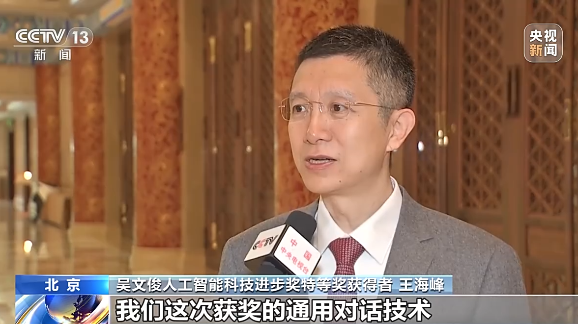 吴文俊人工智能科技进步奖特等奖获得者 王海峰:我们这次获奖的通用对话技术其实就采用了将知识和深度学习相融合的方法,在对话的理解生成、对话语音识别以及对话管理等方面都取得了突破。