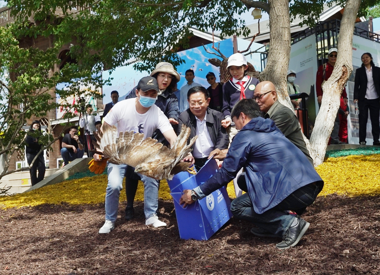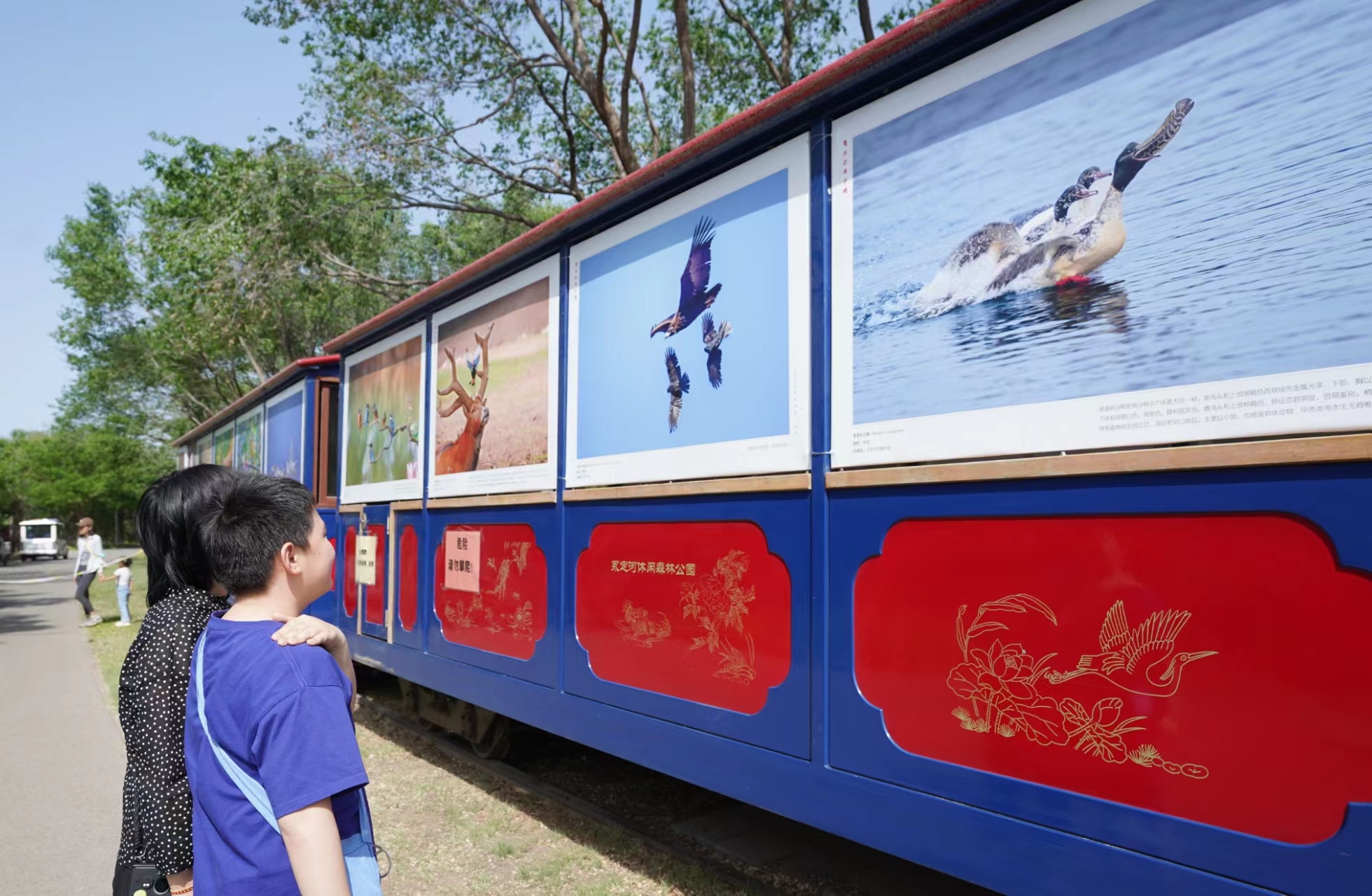 5月7日上午,永定河休闲森林公园举办了一场摄影展,百幅作品描绘了鸢飞鱼跃的场景,吸引市民驻足。市园林绿化局为首批10名“首都生态文化使者”授牌,并现场放归了4只珍稀鸟。