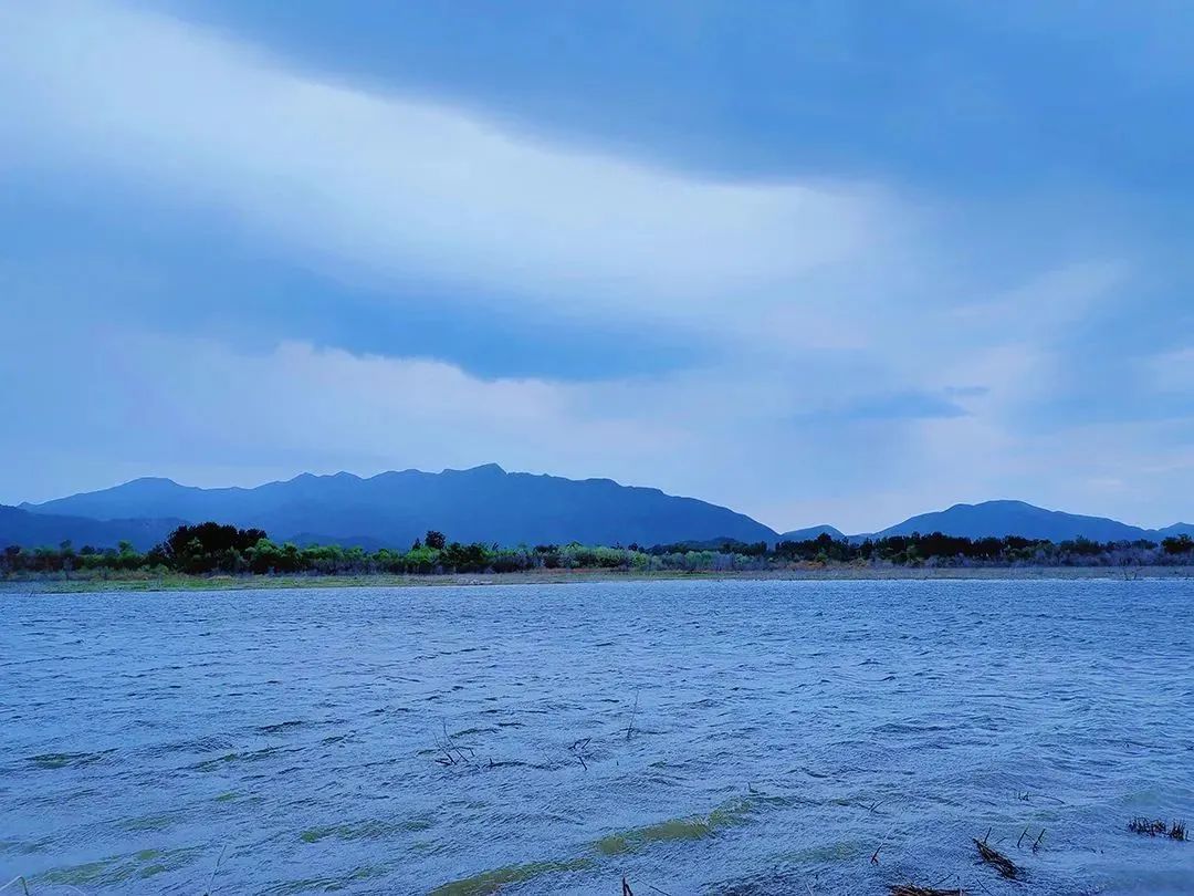 唐指山水库与舞彩浅山相映成趣,美轮美奂。