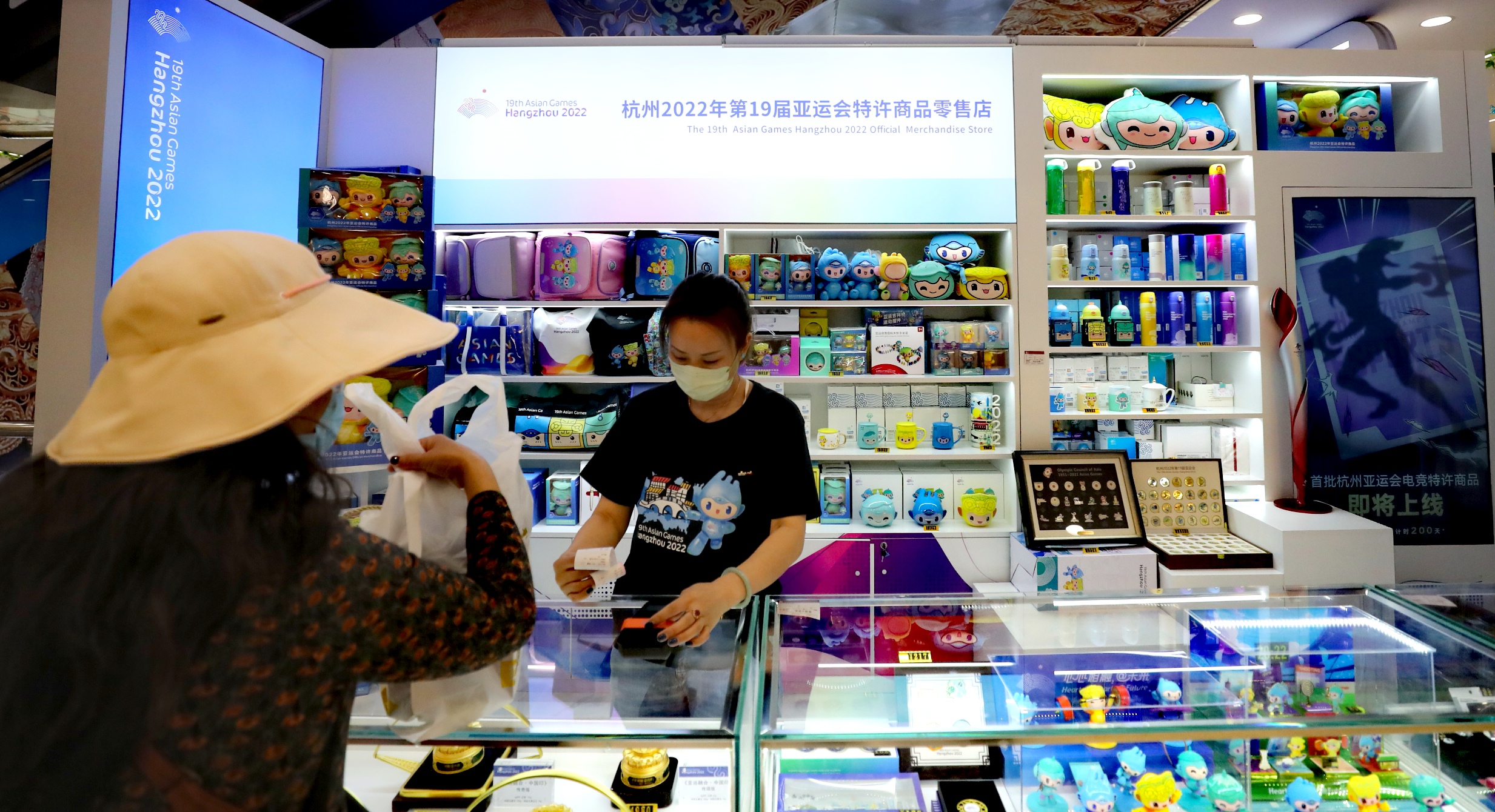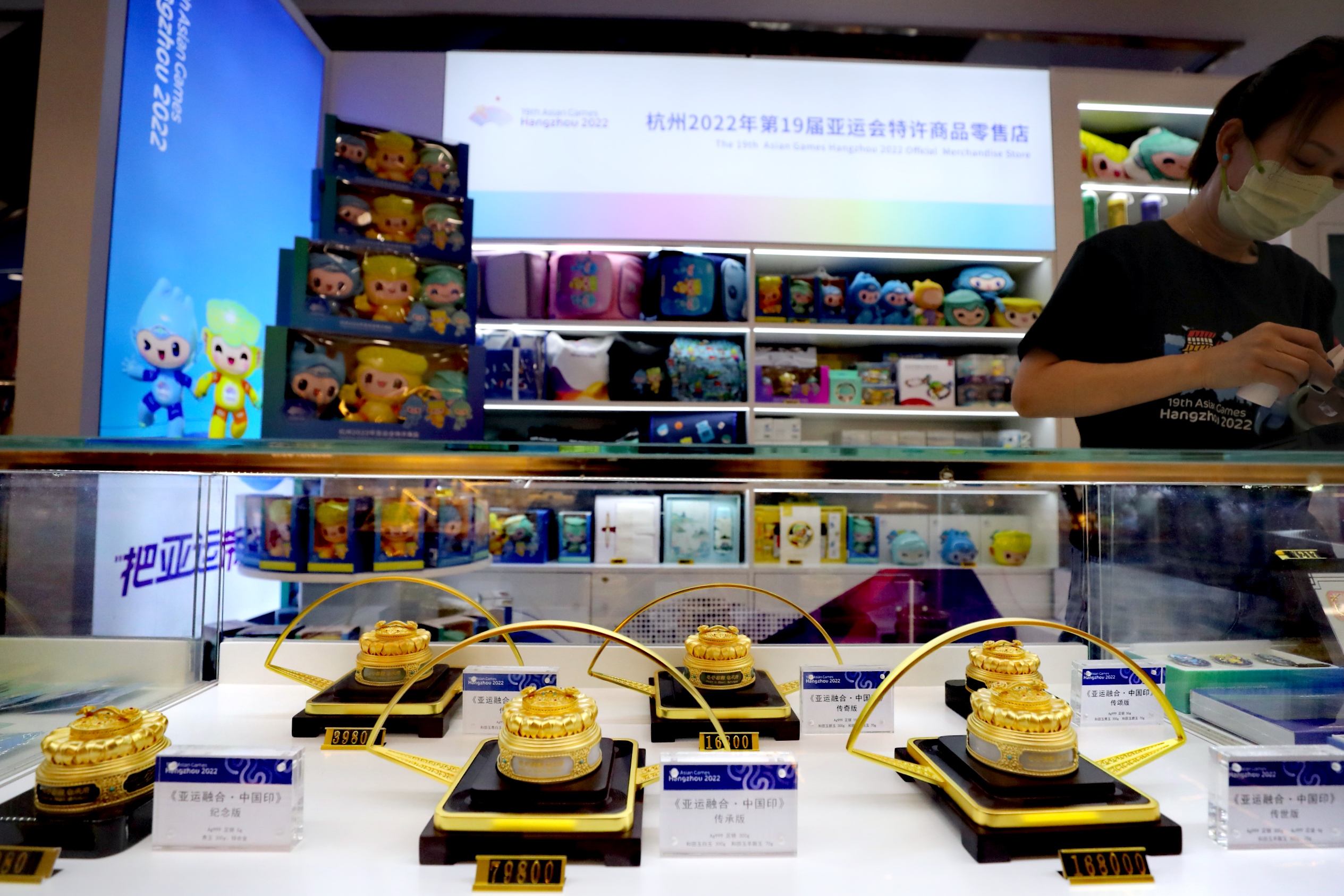 据悉,杭州亚运会筹办至今,特许经营共上线了17大品类1100余款特许商品,开设天猫官方旗舰店、电视频道购物平台及全国线下零售店近1500家。“这款印玺产品5月6日在杭州发布后,这两天我们已经陆续接到不少咨询电话。”现场工作人员介绍,随着杭州亚运会的临近,前来选购特许商品的市民越来越多,店内销售的吉祥物毛绒玩具、电子竞技纪念徽章、吉祥物运动盲盒等都受到欢迎。“希望以特许商品作为媒介,让越来越多人了解亚运、关注亚运、喜爱亚运、参与亚运。”