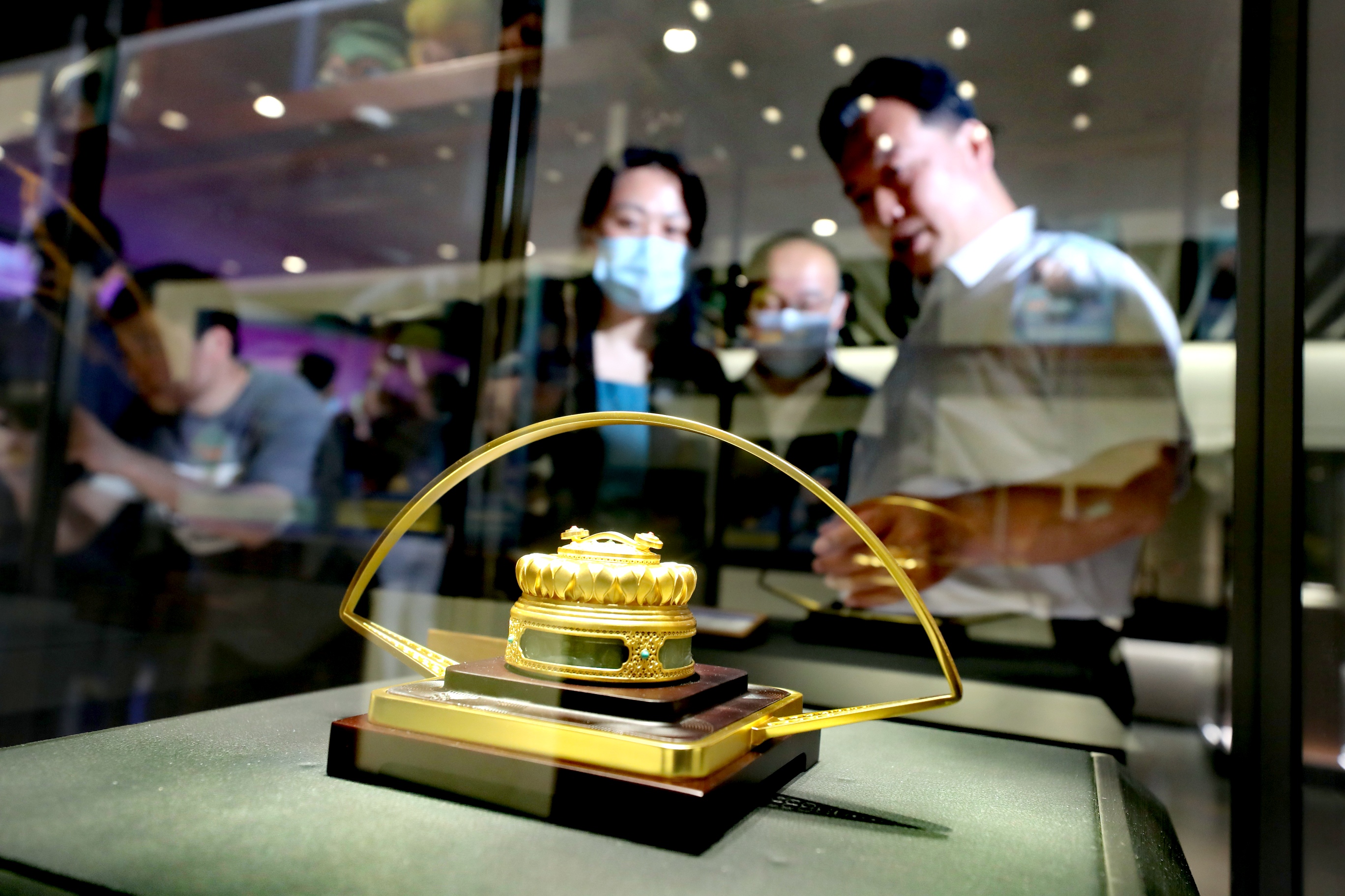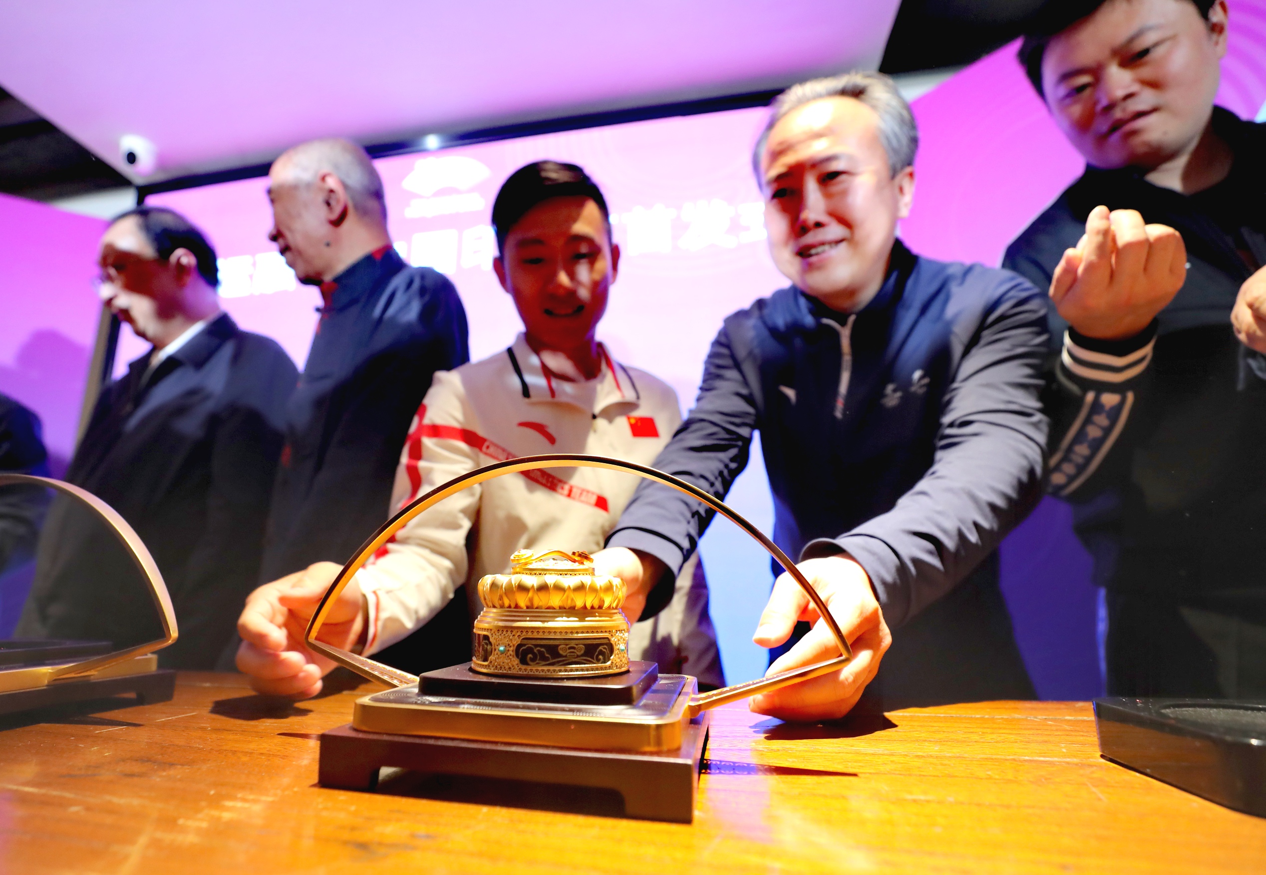 亚运特许商品彰显中国特色,体现城市风采。5月8日,“亚运融合·中国印”系列产品在杭州2022年亚运特许商品零售店北京王府井工美大厦店举行北京首发式。这件亚运特许商品以杭州奥体中心“莲花”为造型主体,将七大亚运元素融入金玉印玺。