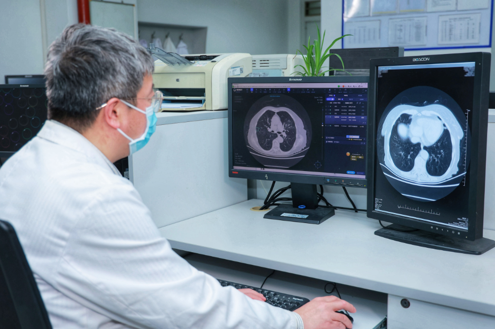北京市海淀医院放射科执行主任李大胜在使用推想医疗肺结节辅助筛查软件。