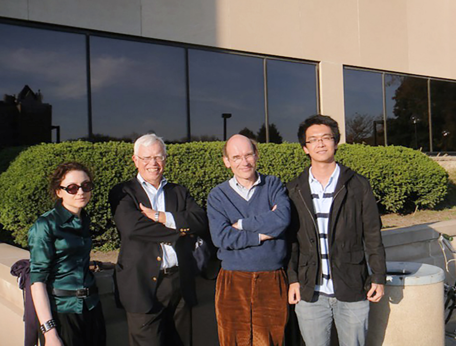陈宽(右一)在美国芝加哥大学攻读经济学和金融双博士学位期间。老师赫克曼是2000年诺贝尔经济学奖获得者(左二)