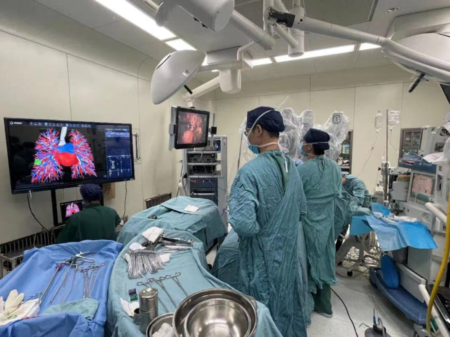 推想医疗AI-4D胸部智能可视化解决方案在术中应用。