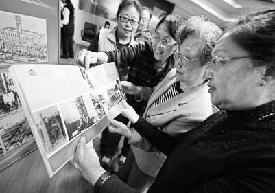 翻看老照片追忆岁月变迁。本报记者 方非摄