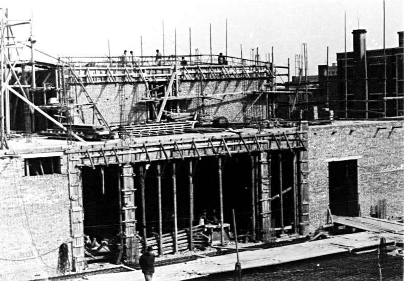 当时,商场抽调了约300名员工,大家在专业技术人员的带领下当起了壮工,都是十六七的姑娘、小伙,个个比着干。黑白照片记录了当时的场景,在一片大干快干中,一位姑娘却在工地哭了鼻子。“为什么不让我上?我也能抡锤、砸夯。”说这话的正是穆庆宁,看着小伙子们干得起劲,这位姑娘也来请战。“女孩子干这么重的活吃不消,而且有危险。”好心的劝慰反而让穆庆宁哭了鼻子,她回去后拉着几位姐妹组成了女子突击队,专门给男同胞们运沙、拉砖。