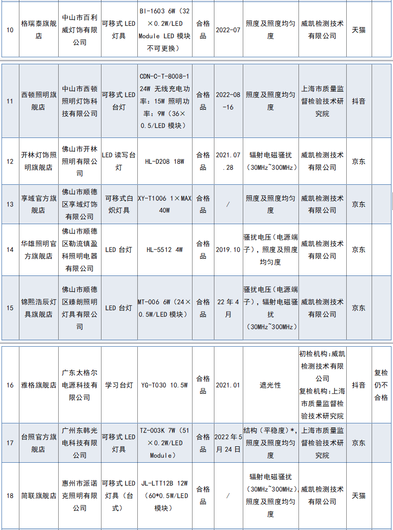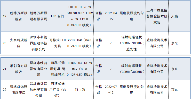 由台照官方旗舰店销售,广州东韩光电科技有限公司生产的可移式LED灯具(型号:TZ-003K 7W(51×0.2W/LED Module)),结构(平稳度),照度及照度均匀度项目不合格。