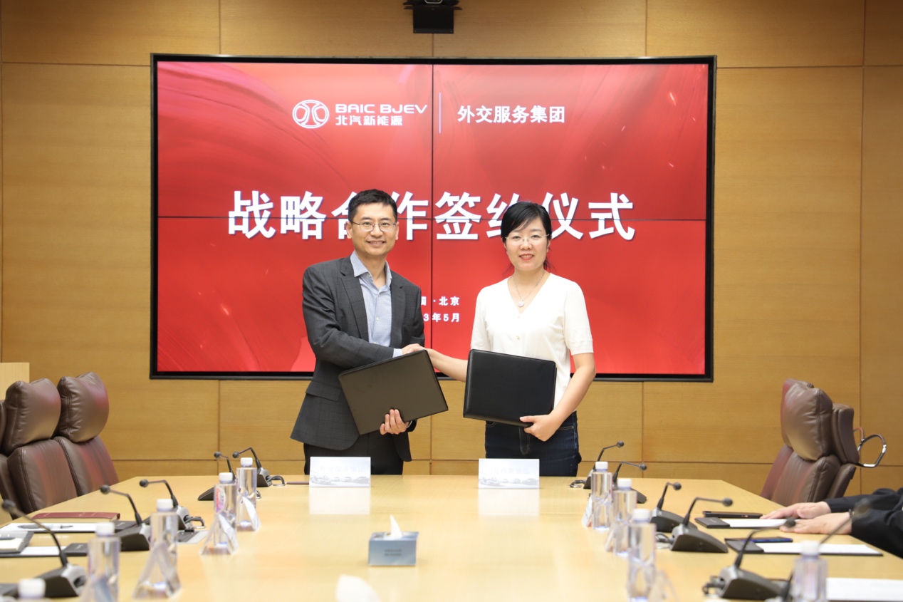 5月11日,极狐汽车与外交服务集团在北京蓝谷签署战略合作协议,极狐汽车正式加入驻华机构工作用车队伍,成为展示大国形象、自主造车实力的轮上“名片”。