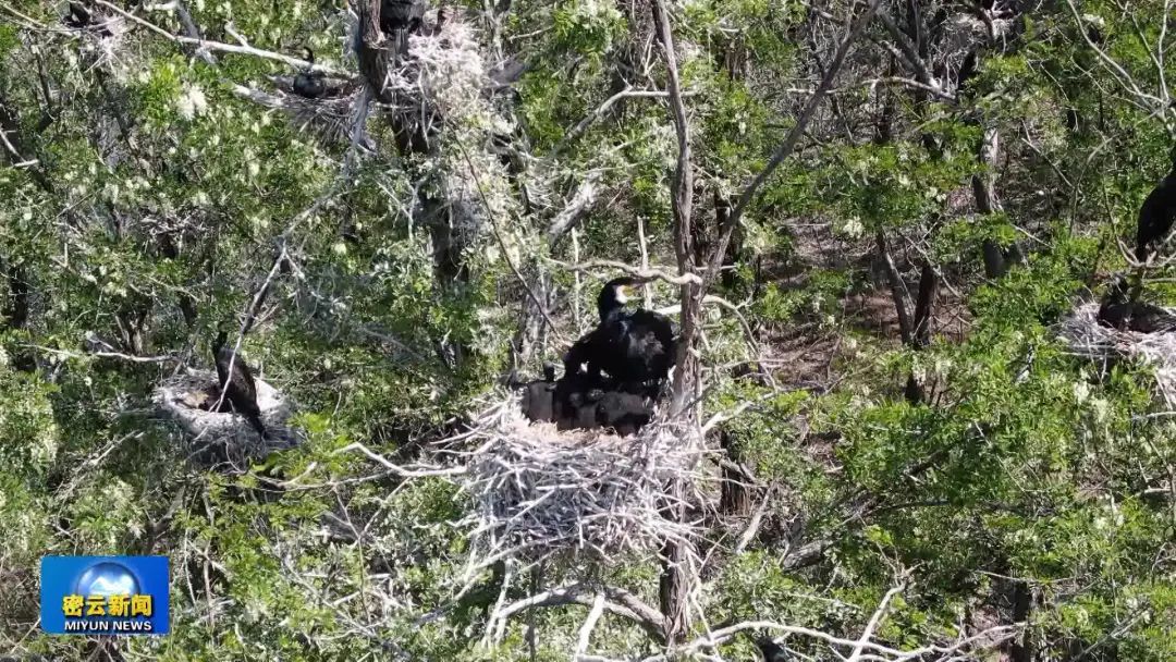 初夏时节,密云水库鸟岛已生出片片新绿,经过一个月左右的繁衍孵化,鸬鹚、苍鹭、白鹭三种常见鸟类雏鸟已陆续破壳。