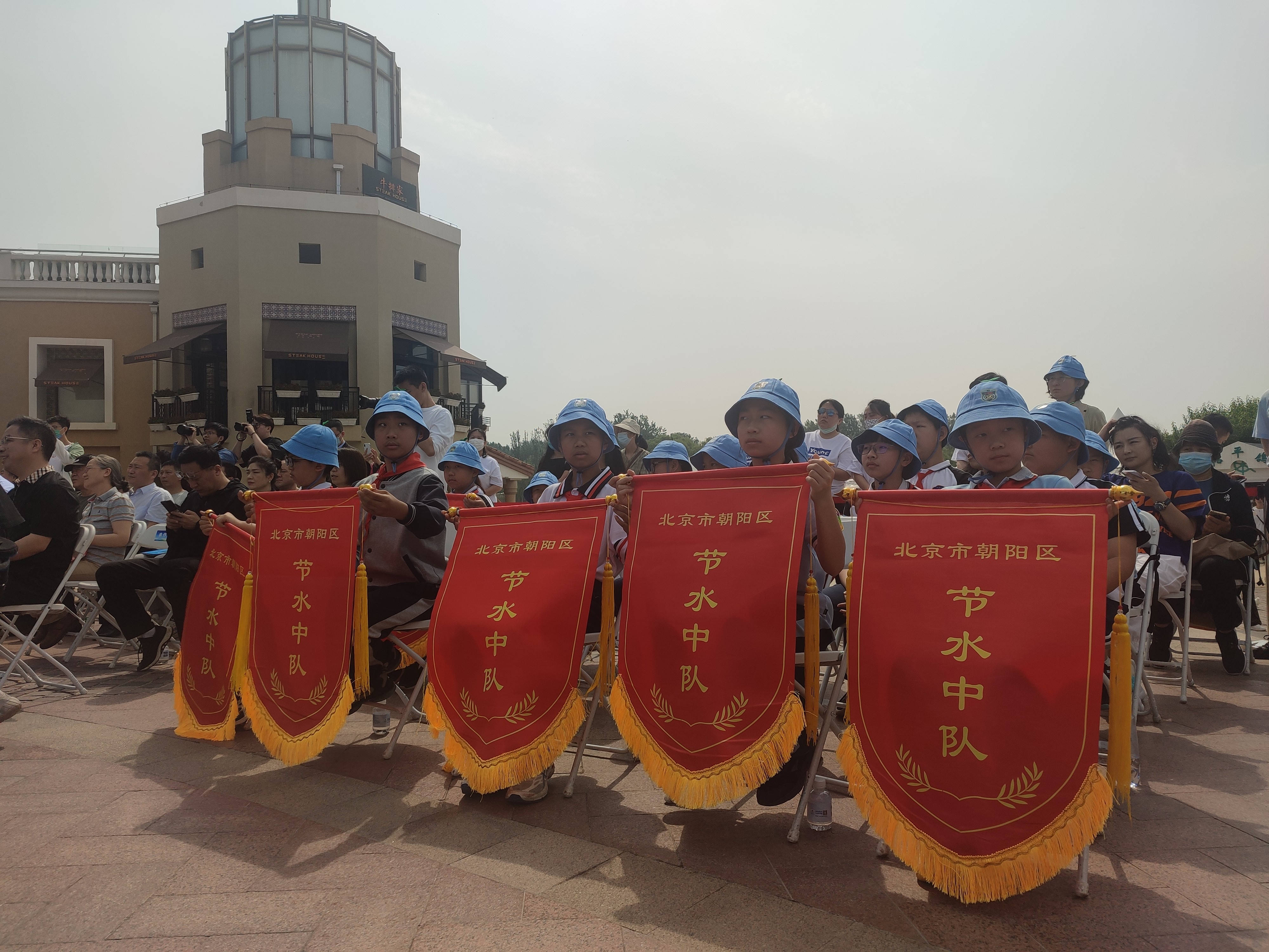 启动仪式上,来自首都师范大学朝阳金盏学校、中国教育科学研究院朝阳实验学校等学校的学生们,作为青少年积极参与节水行动、推广节水理念的代表,被授予“节水中队”旗帜。