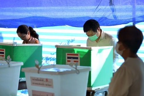5月14日,人们在泰国曼谷一处投票站投票。图源:新华社